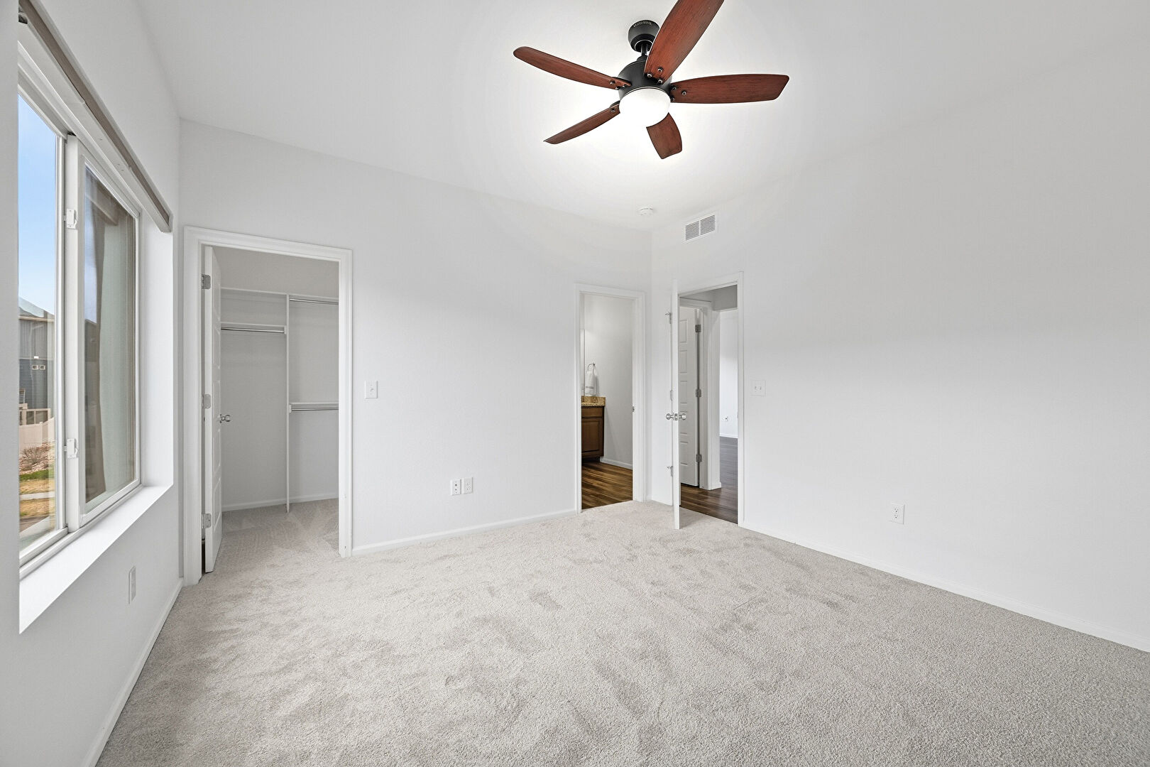 Baseboards Wall, Carpet, Ceiling Fan, Drywall, Ensuite Bathroom, Natural Light, Vent, Walk In Closet, Carpet, Drywall