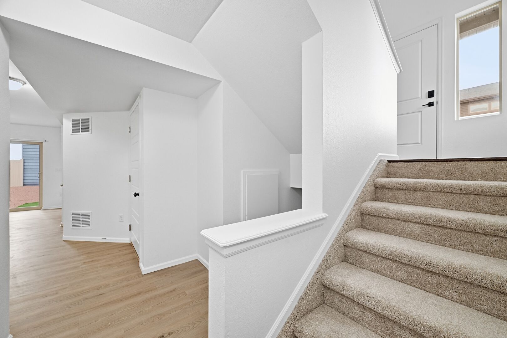 Baseboards Wall, Natural Light, Stairs, Vent, Wood Finish Floor, Drywall