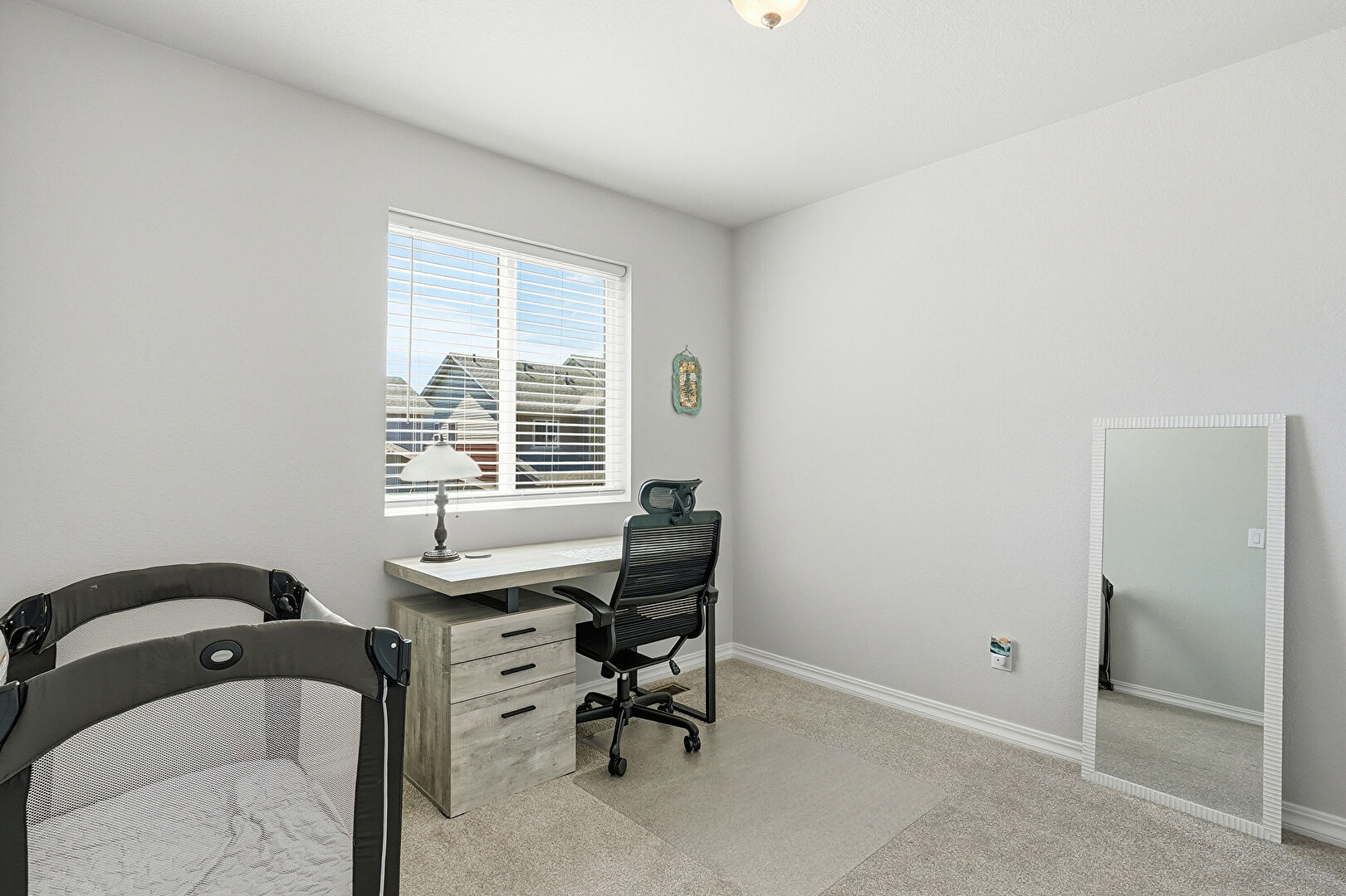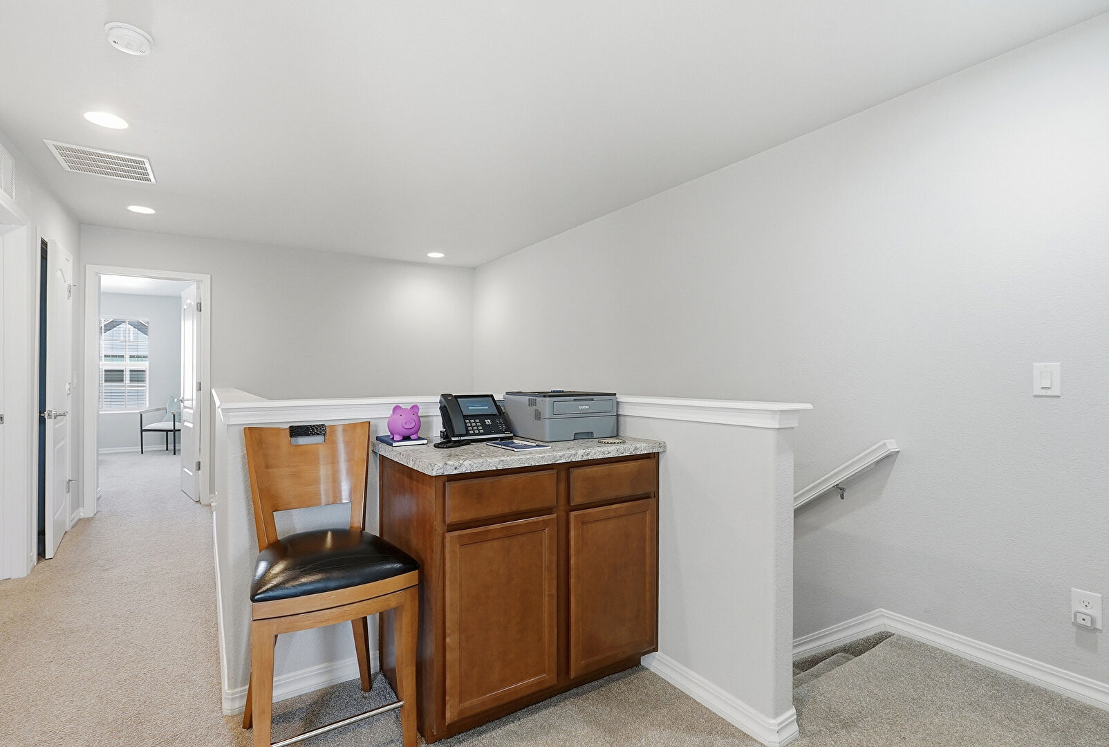 Baseboards Wall, Carpet, Drywall, Natural Light, Office Area, Smoke Carbon Monoxide Detector, Vent, Baseboards Wall, Drywall