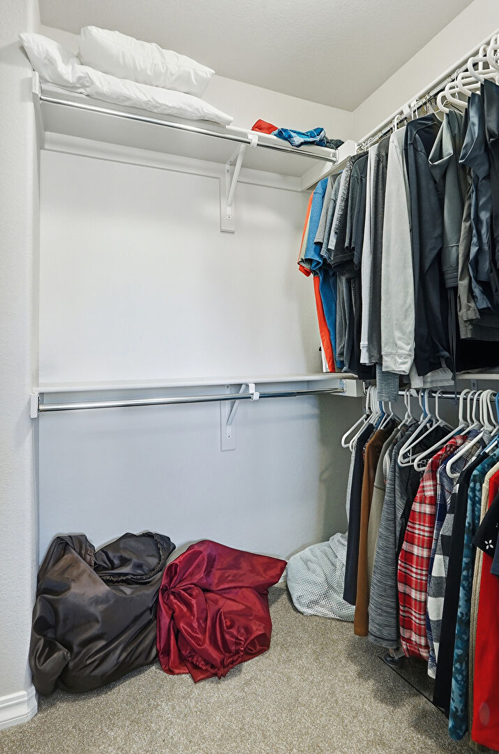 Arched Walkways, Baseboards Wall, Carpet, Drywall, Natural Light, Smoke Carbon Monoxide Detector, Vent, Carpet, Closet, Drywall, Walk In Closet