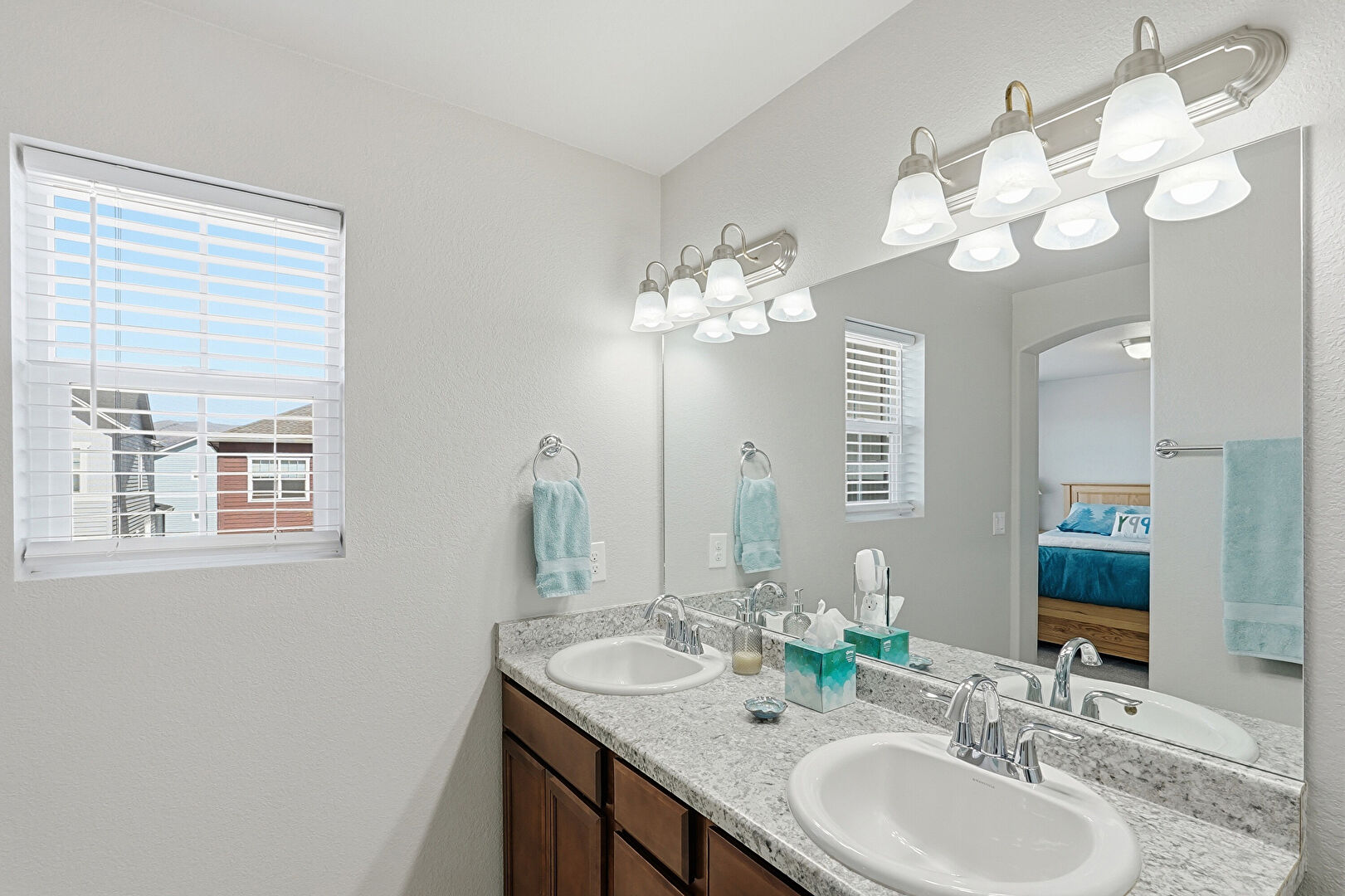 Double Vanity, Full Bathroom, Natural Light, Textured Wall, Vanity, Vent, Drywall, Ensuite Bathroom