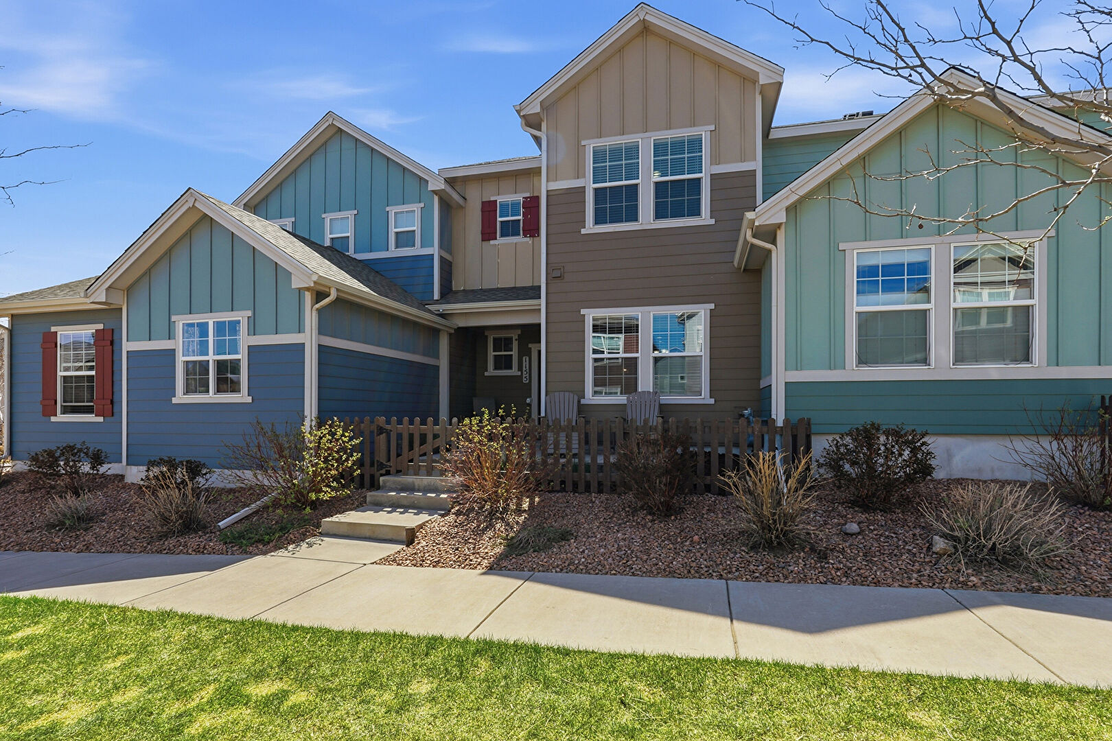 Board Batten Siding, Concrete Foundation, Downspout, Fence, Gas Meter, Gate, Gutters, Horizontal Siding, Lawn, Porch, Shingle Roof, Stoop, Vertical Siding, Fence, Gutters, Horizontal Siding, Porch