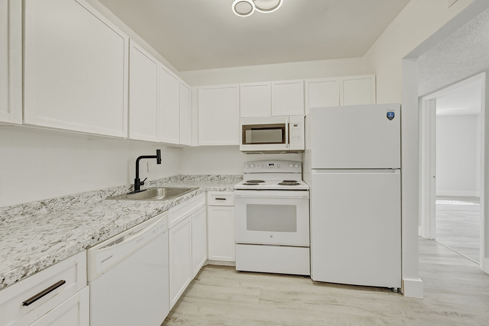Baseboards Wall, Drywall, Shaker Cabinets, Stone Countertops, Wood Finish Floor, Shaker Cabinets, Wood Finish Floor