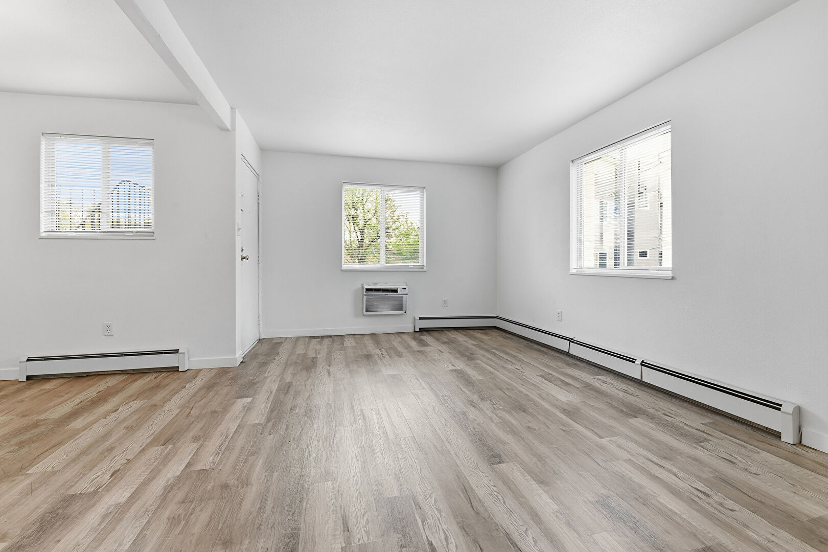 Baseboard Radiator, Baseboards Wall, Drywall, Natural Light, Notable Chandelier, Wood Finish Floor, Drywall, Wall Mounted Ac, Wood Finish Floor