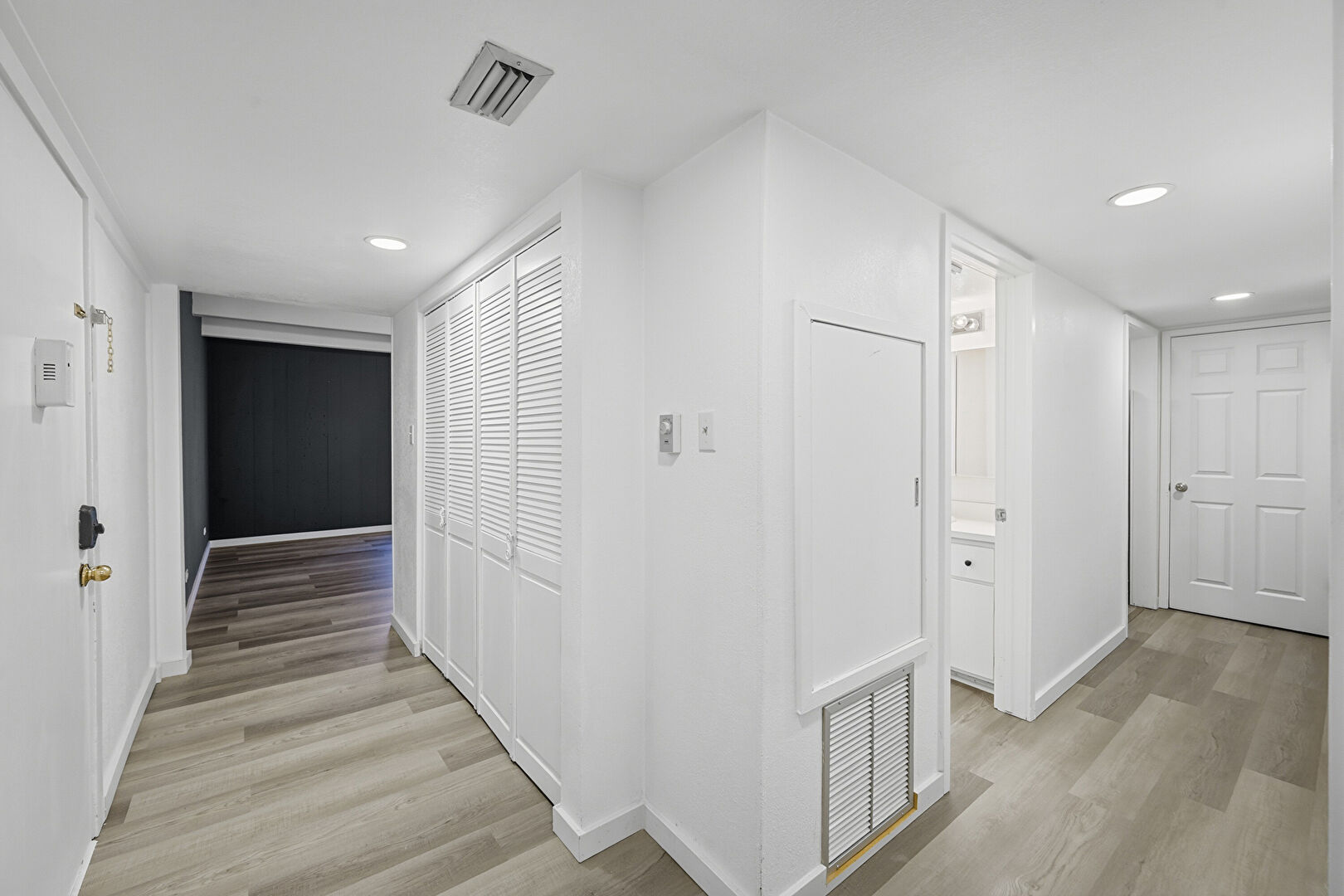 Baseboards Wall, Drywall, Vent, Wood Finish Floor, Recessed Lighting