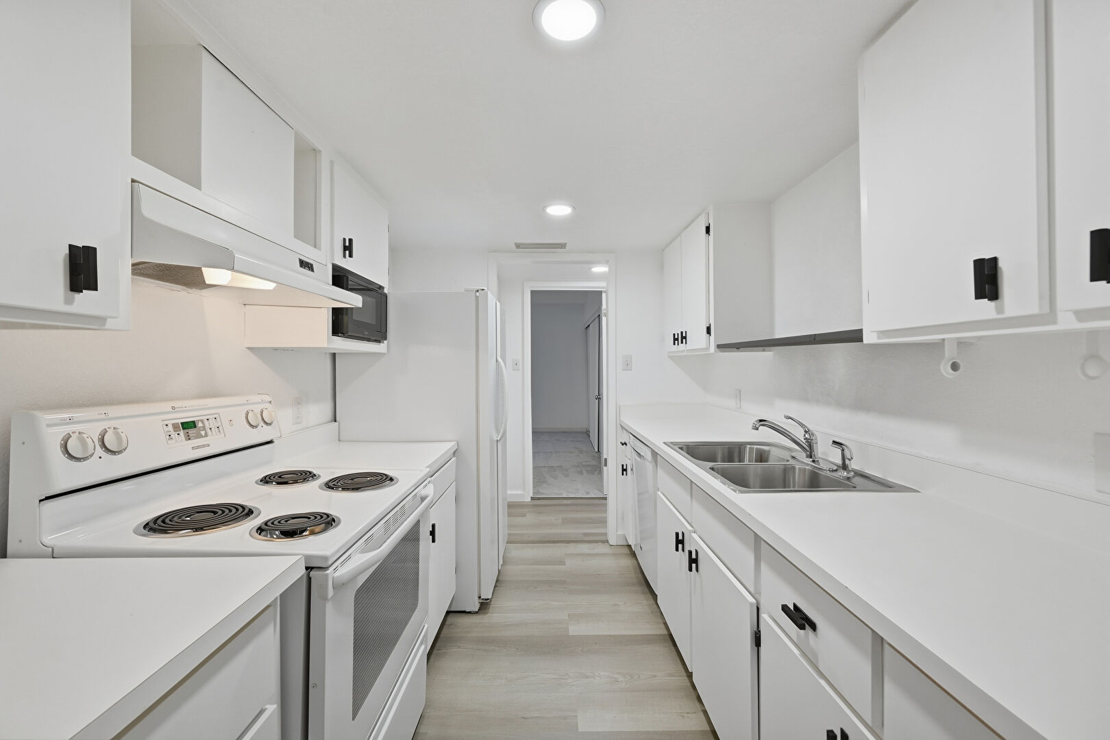 Drywall, Natural Light, Recessed Lighting, Visible Hinge Cabinets, Wood Finish Floor, Baseboards Wall, Recessed Lighting