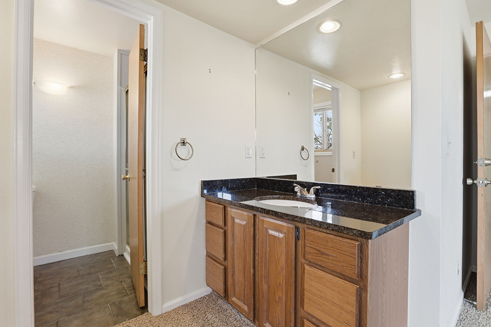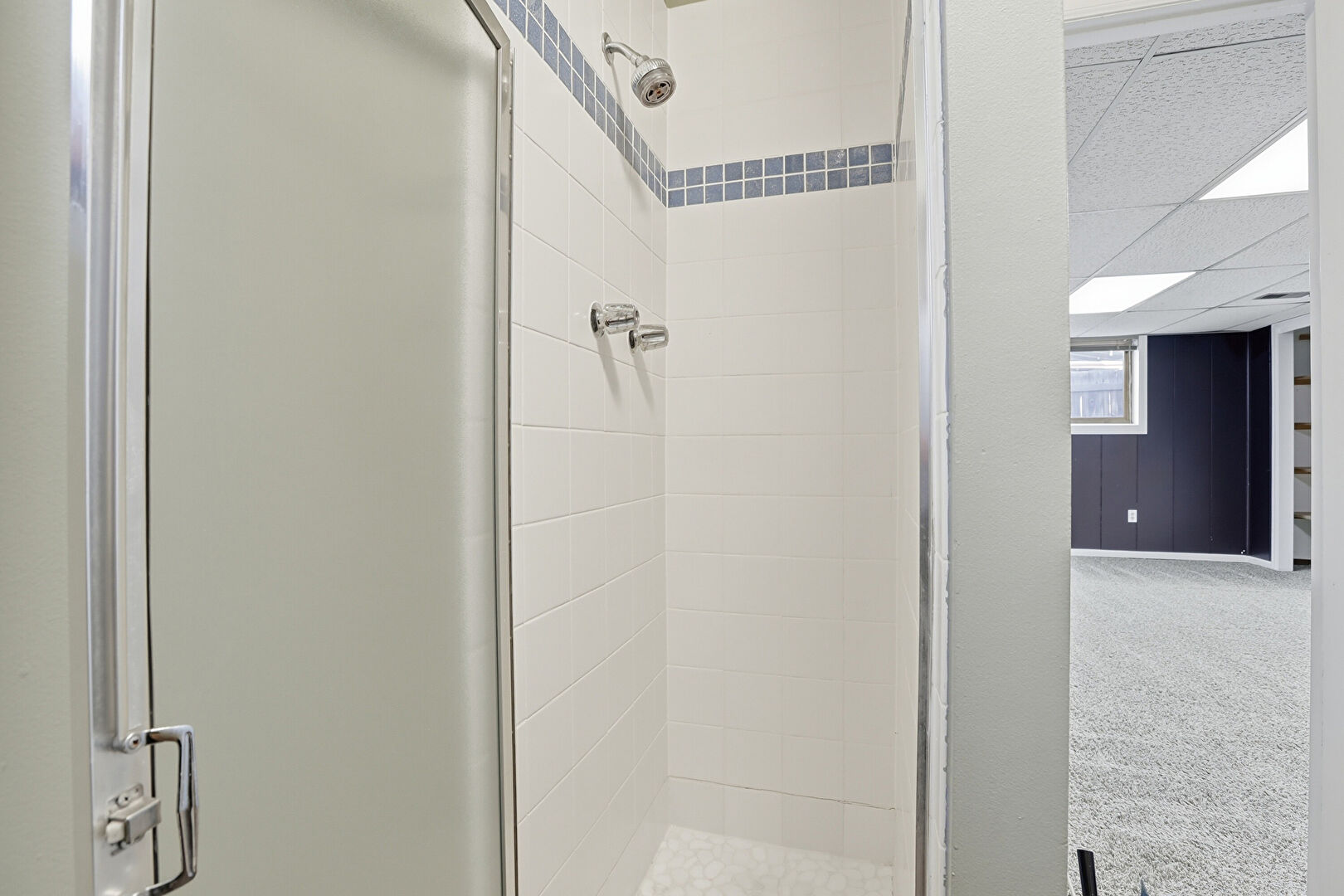 Baseboards Wall, Carpet, Closet, Drop Ceiling, Drywall, Full Bathroom, Half Bathroom, Natural Light, Recessed Lighting, Textured Wall, Vanity, Wood Finish Floor, Baseboards Wall, Combined Bath Shower, Drywall, Full Bathroom, Natural Light, Vanity