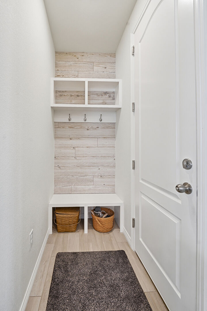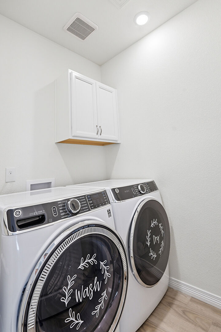 Baseboards Wall, Recessed Lighting, Textured Wall, Vent, Washer Hookup, Wood Finish Floor, Laundry