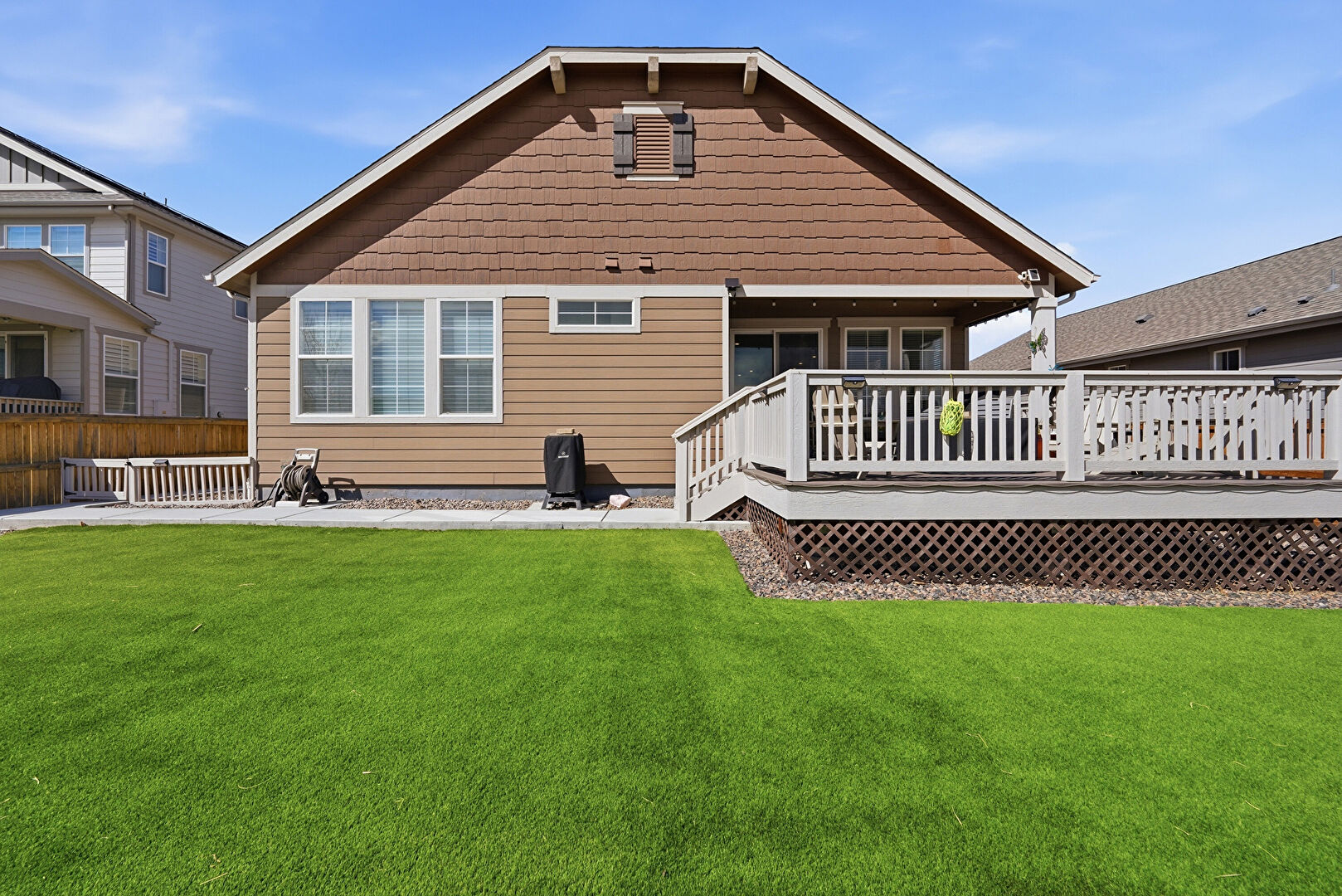 Concrete Foundation, Deck, Downspout, Fence, Gutters, Horizontal Siding, Lawn, Patio, Residential View, Shake Shingle Siding, Deck, Fence, Horizontal Siding