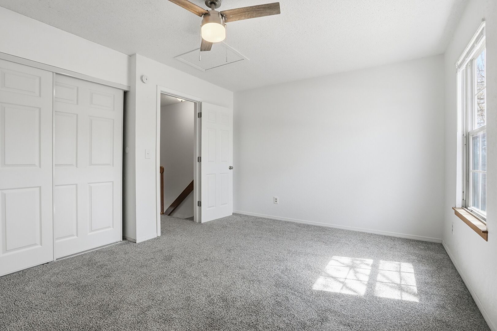 Baseboards Wall, Carpet, Ceiling Fan, Drywall, Natural Light, Stairs, Textured Ceiling, Baseboards Wall, Drywall