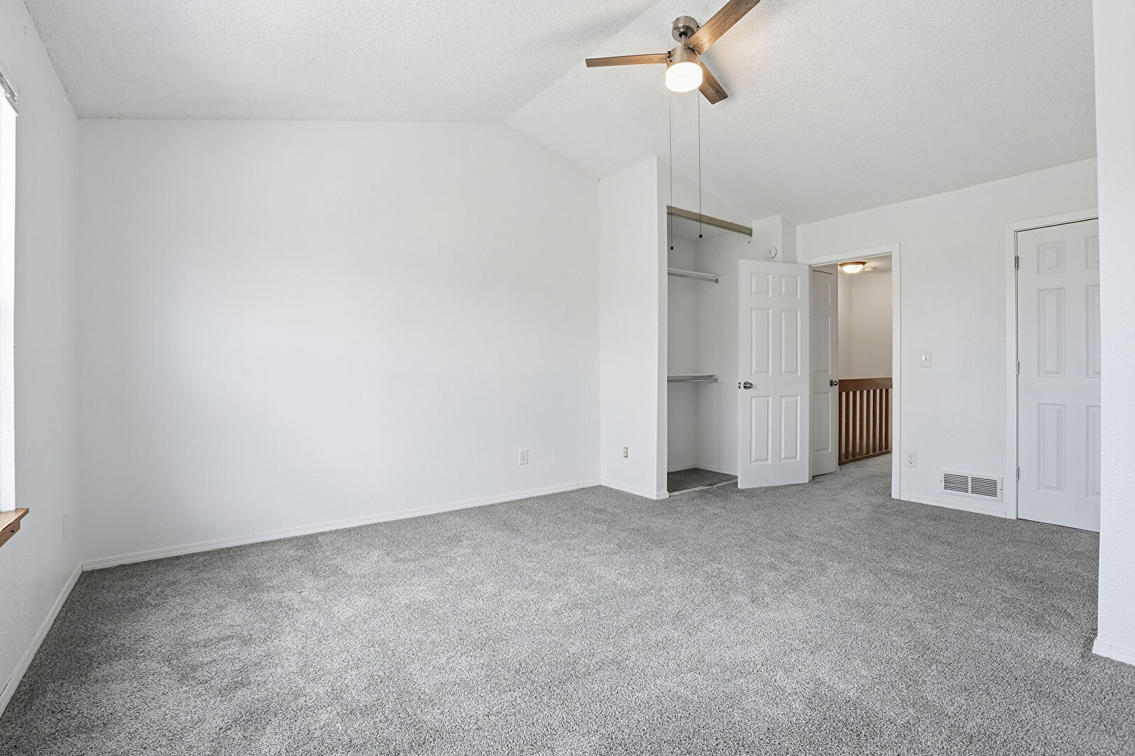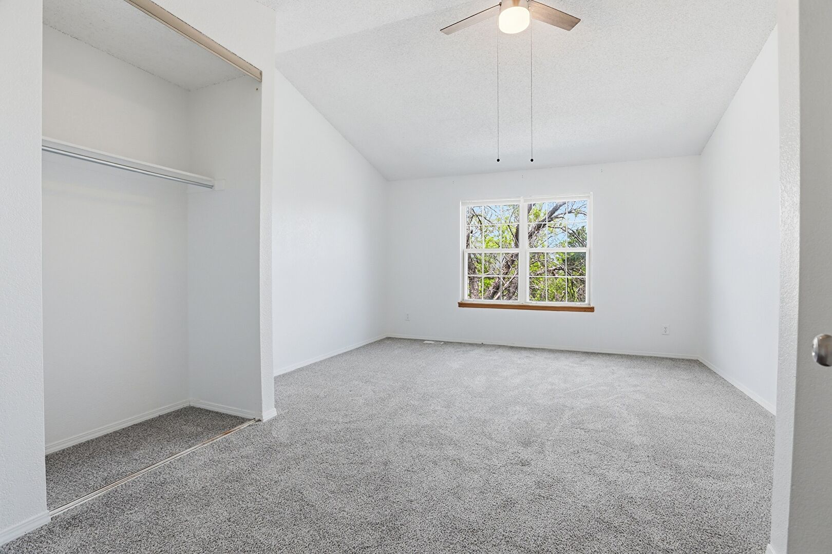 Baseboards Wall, Bonus Room, Carpet, Cathedral Ceiling, Ceiling Fan, Closet, Drywall, High Ceiling, Natural Light, Textured Ceiling, Two Closets, Vaulted Ceiling, Vent, Baseboards Wall, Ceiling Fan, Drywall, Natural Light, Textured Ceiling, Vaulted Ceiling