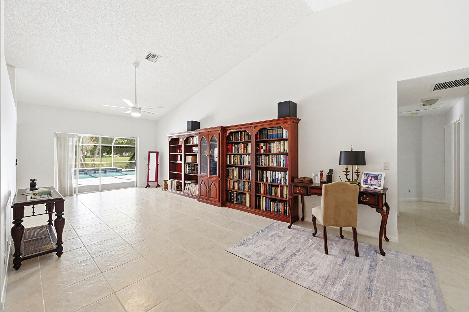 Baseboards Wall, Cathedral Ceiling, Ceiling Fan, Drywall, High Ceiling, Natural Light, Office Area, Textured Ceiling, Tile Floor, Toaster, U Shaped Kitchen, Vaulted Ceiling, Vent, Vinyl Floor, Baseboards Wall, High Ceiling, Natural Light, Textured Ceiling, Vaulted Ceiling