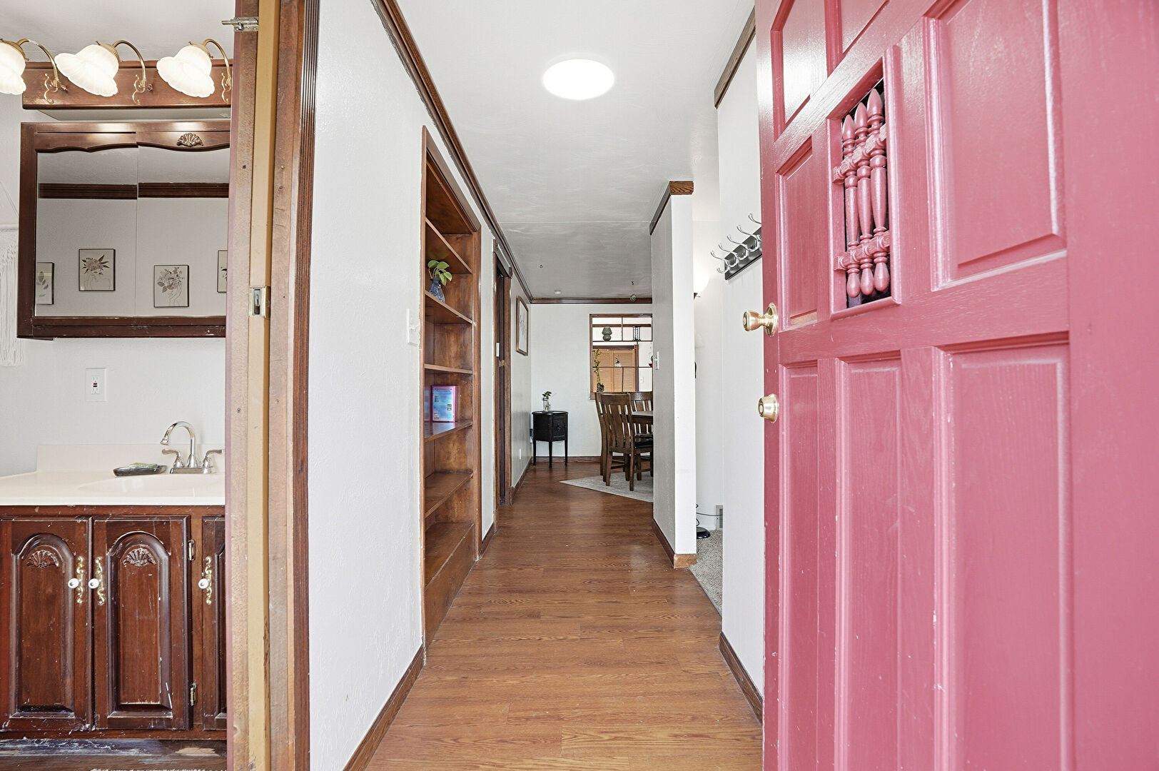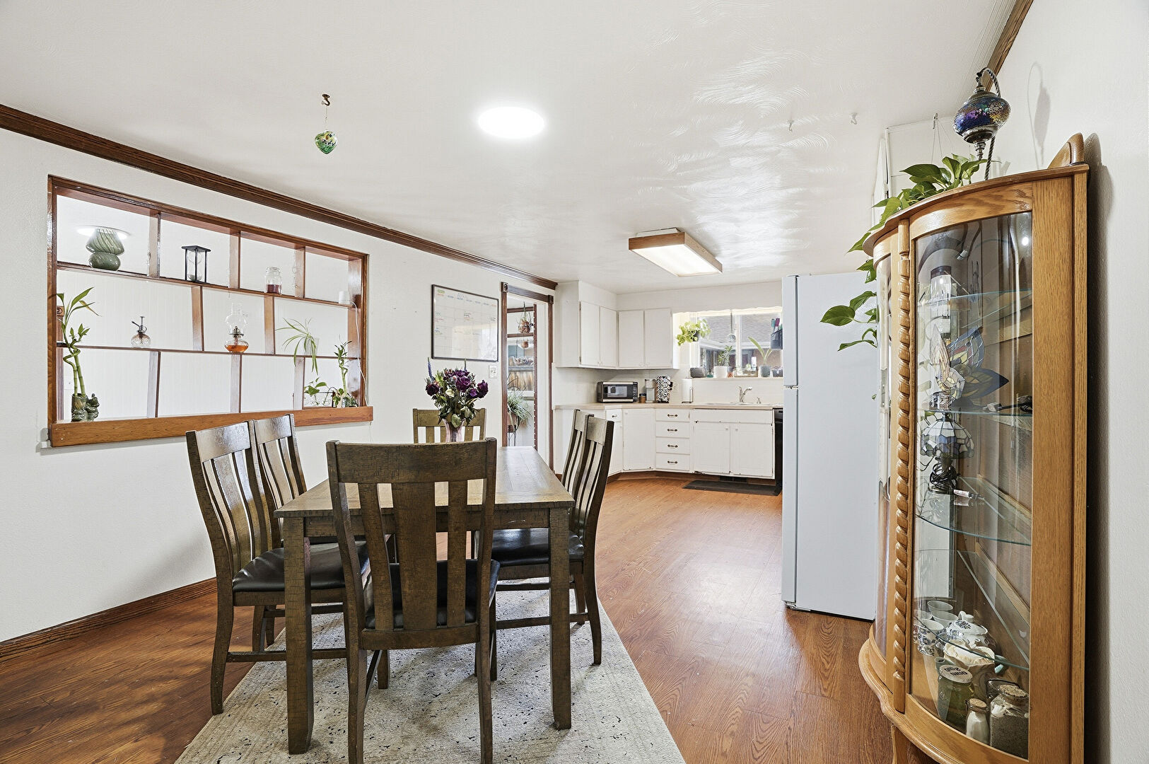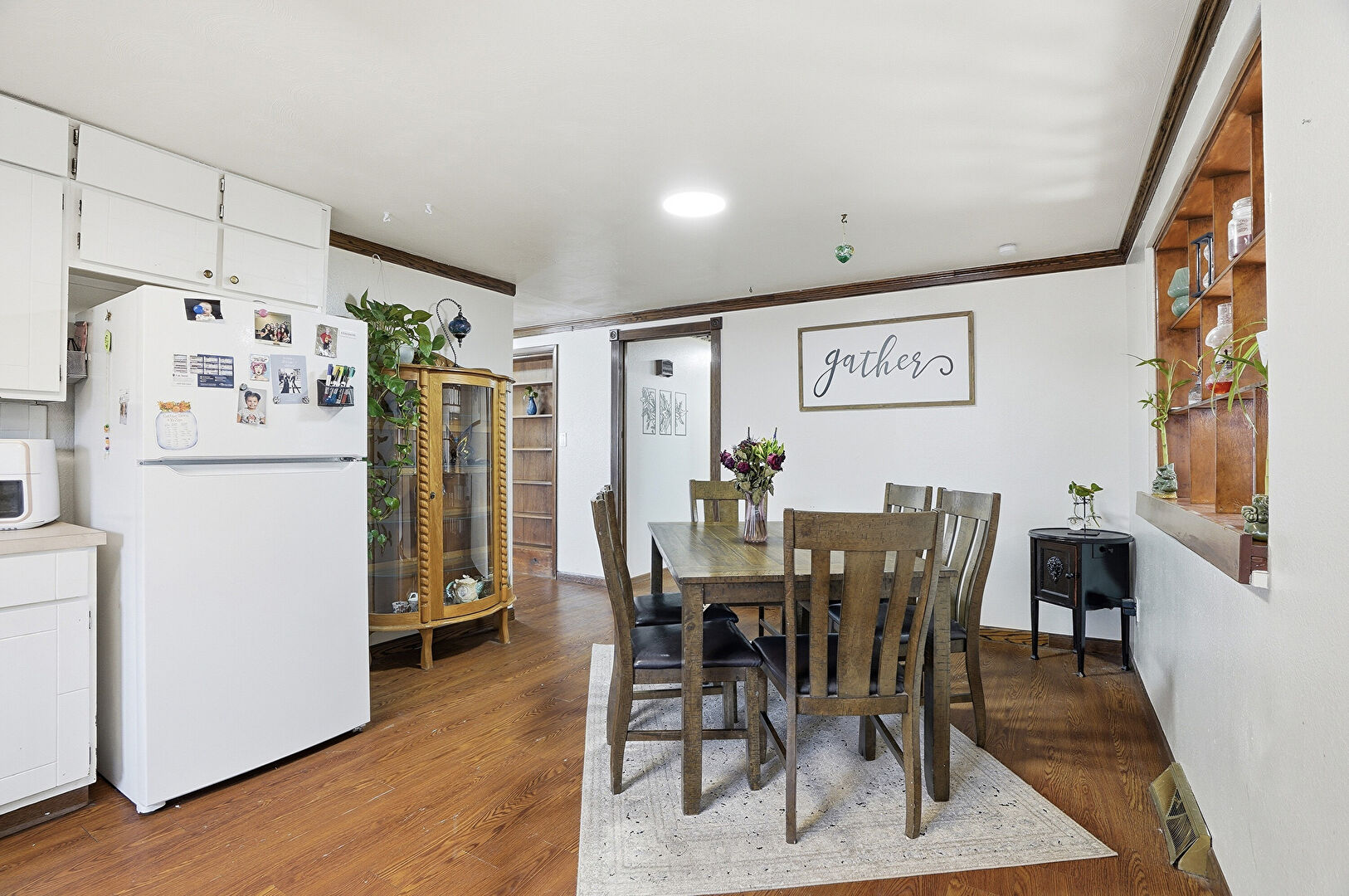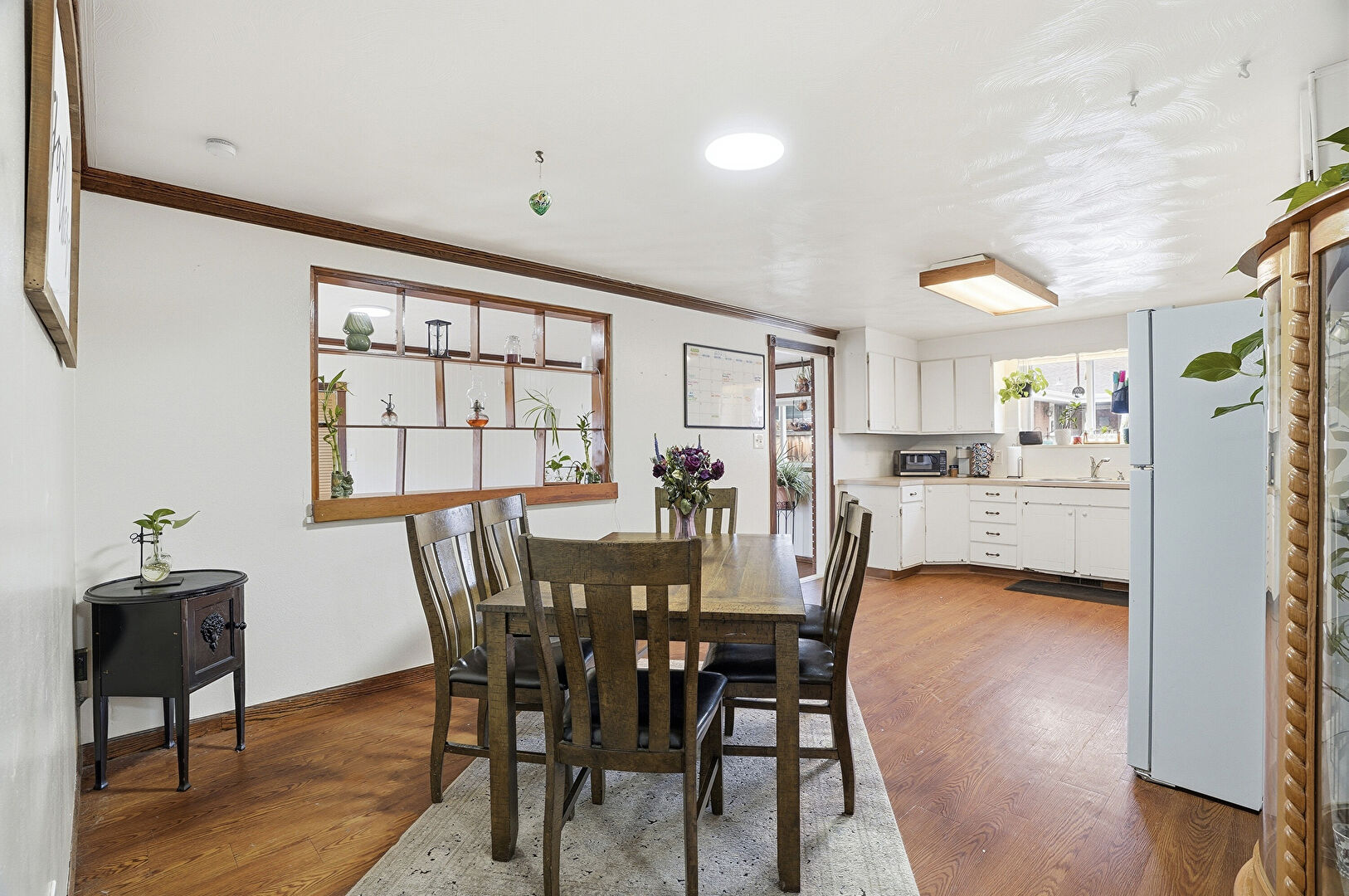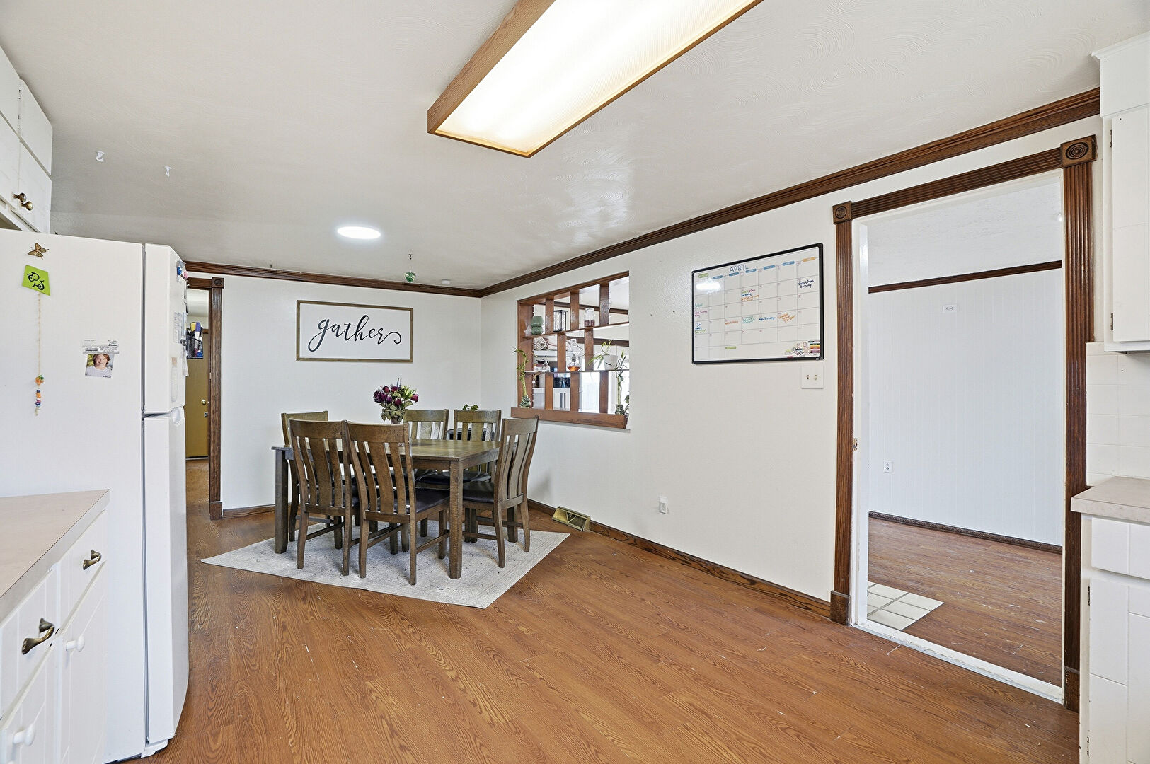 Baseboards Wall, Crown Molding, Drywall, L Shaped Kitchen, Natural Light, Recessed Lighting, Vent, Wood Finish Floor, Baseboards Wall, Crown Molding, Natural Light