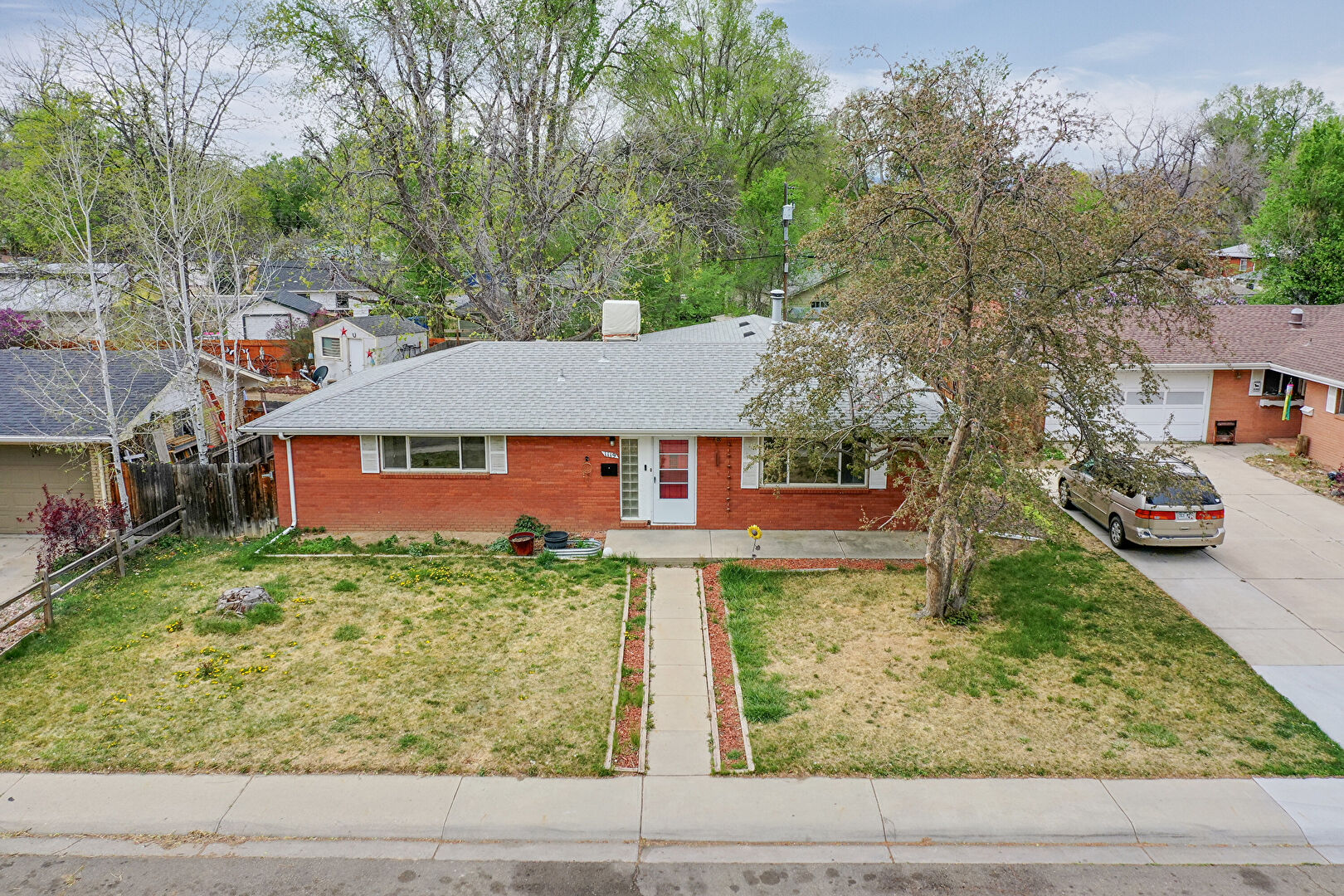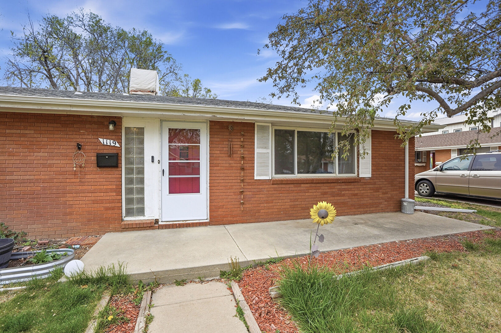Brick Siding, Chimney, Concrete Foundation, Downspout, Fence, Gutters, Lawn, Parking Pad, Patio, Shingle Roof, Stoop, Chimney, Downspout, Gutters, Lawn