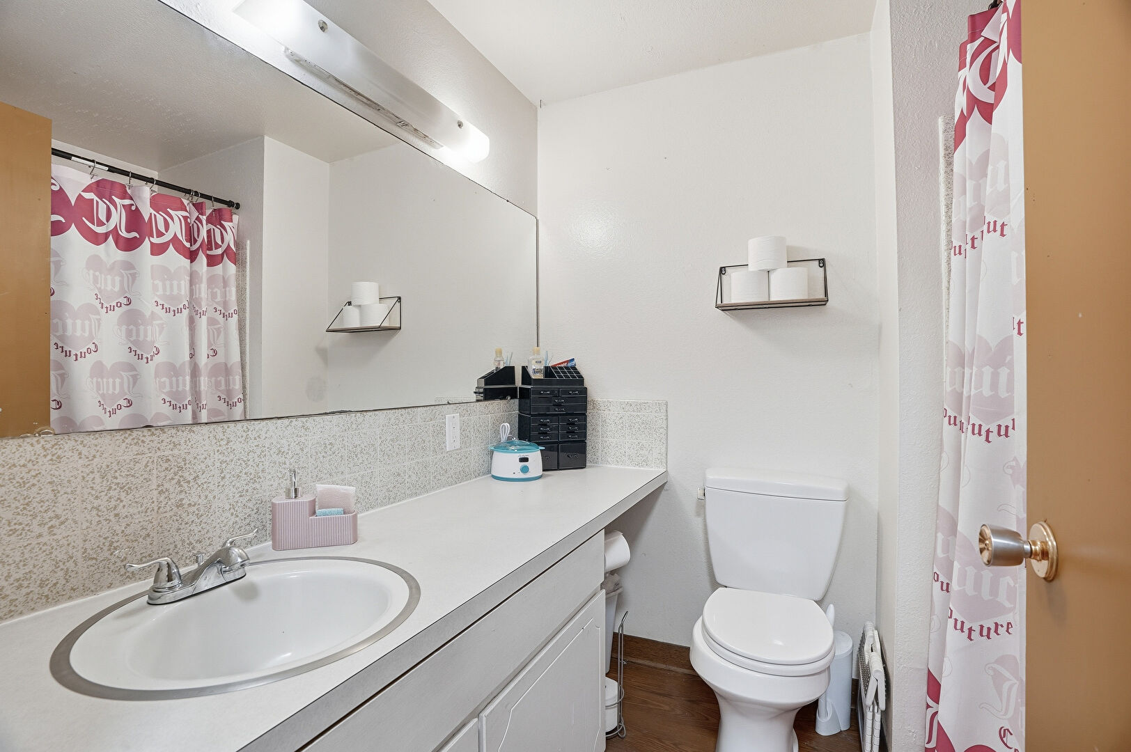 Baseboards Wall, Drywall, Full Bathroom, Wood Finish Floor, Vanity