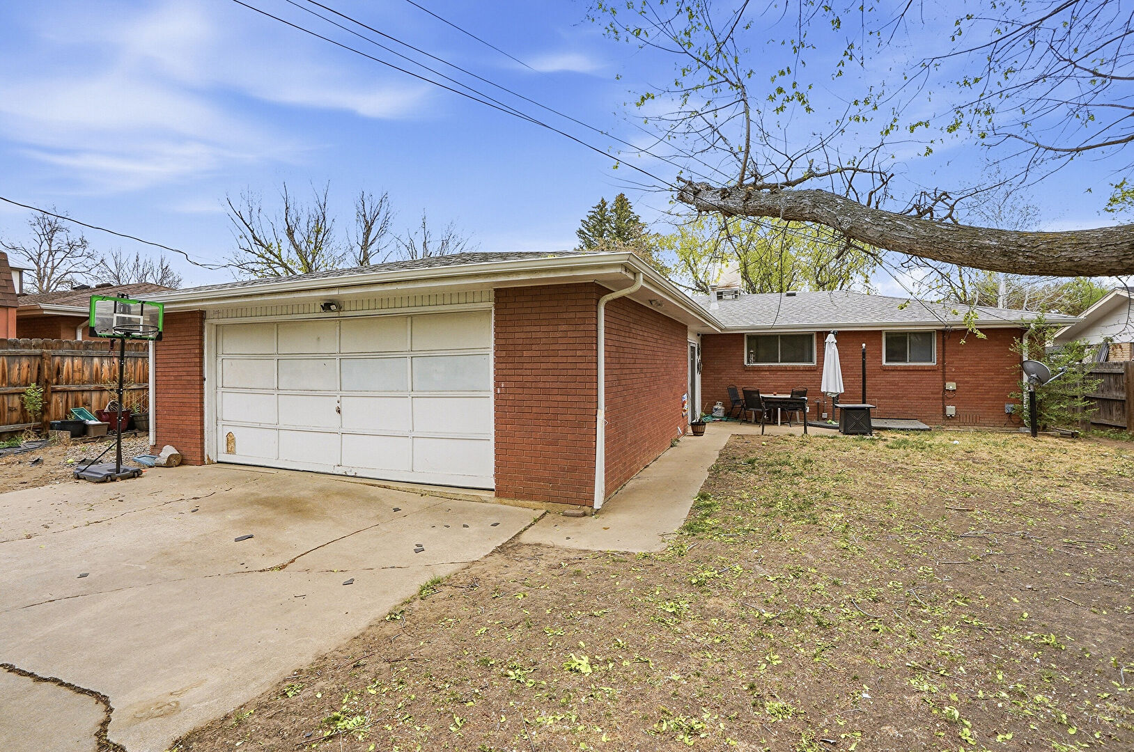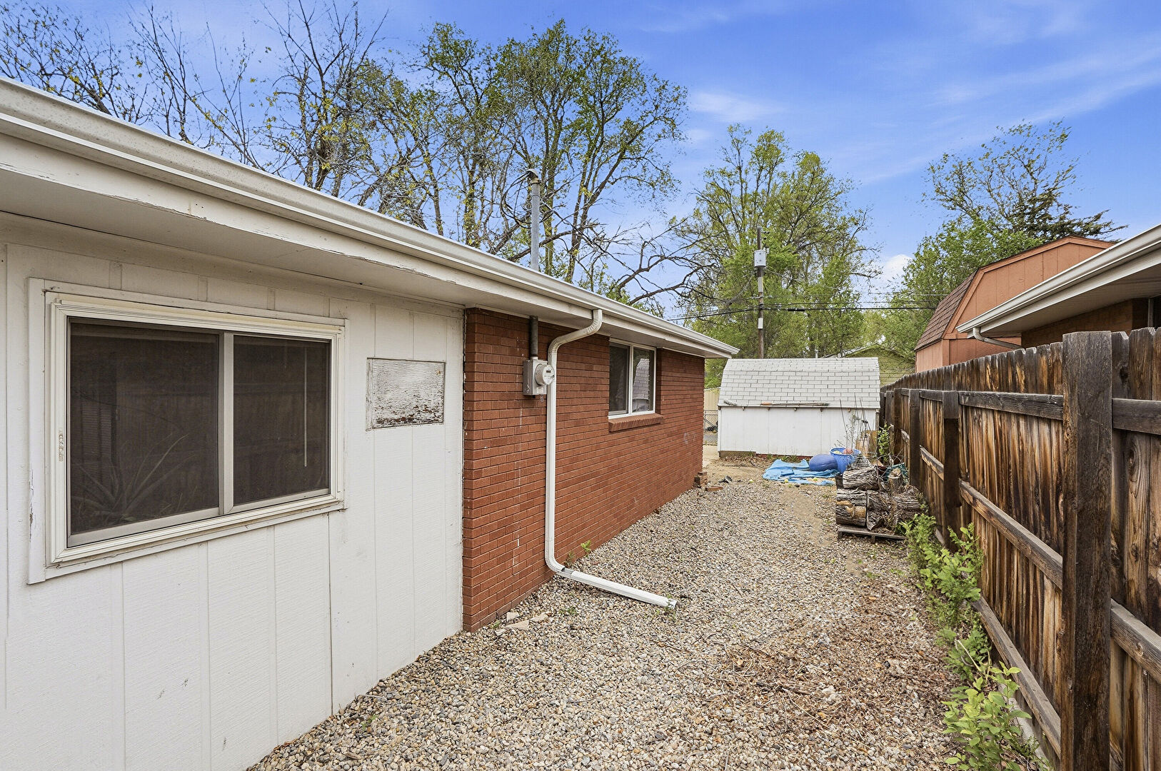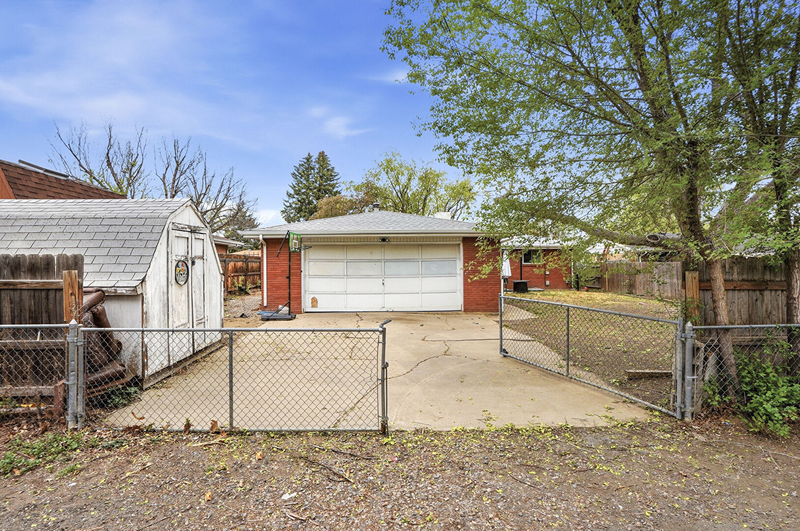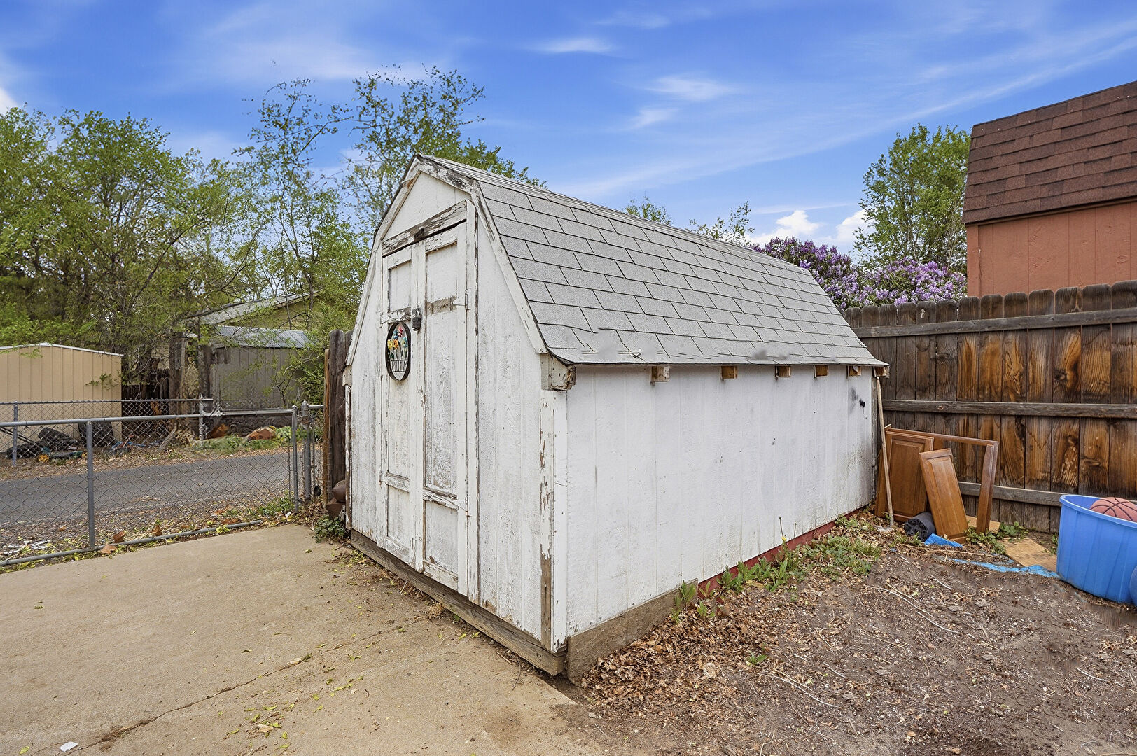 Brick Siding, Central Ac, Downspout, Driveway, Electric Meter, Fence, Grill, Gutters, Lawn, Outdoor Structure, Patio, Shed, Shingle Roof, Vertical Siding, Brick Siding, Downspout, Fence, Gate, Gutters