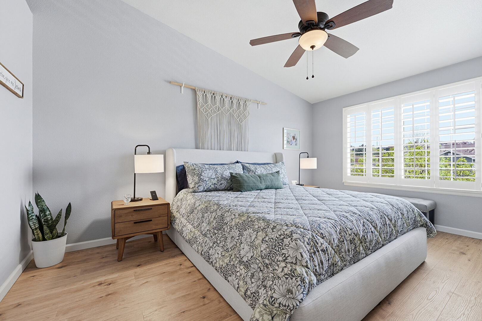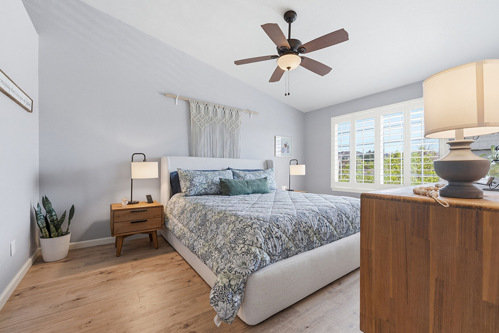 Baseboards Wall, Ceiling Fan, Drywall, Ensuite Bathroom, Natural Light, Vaulted Ceiling, Wood Finish Floor, Baseboards Wall, Drywall, Vaulted Ceiling
