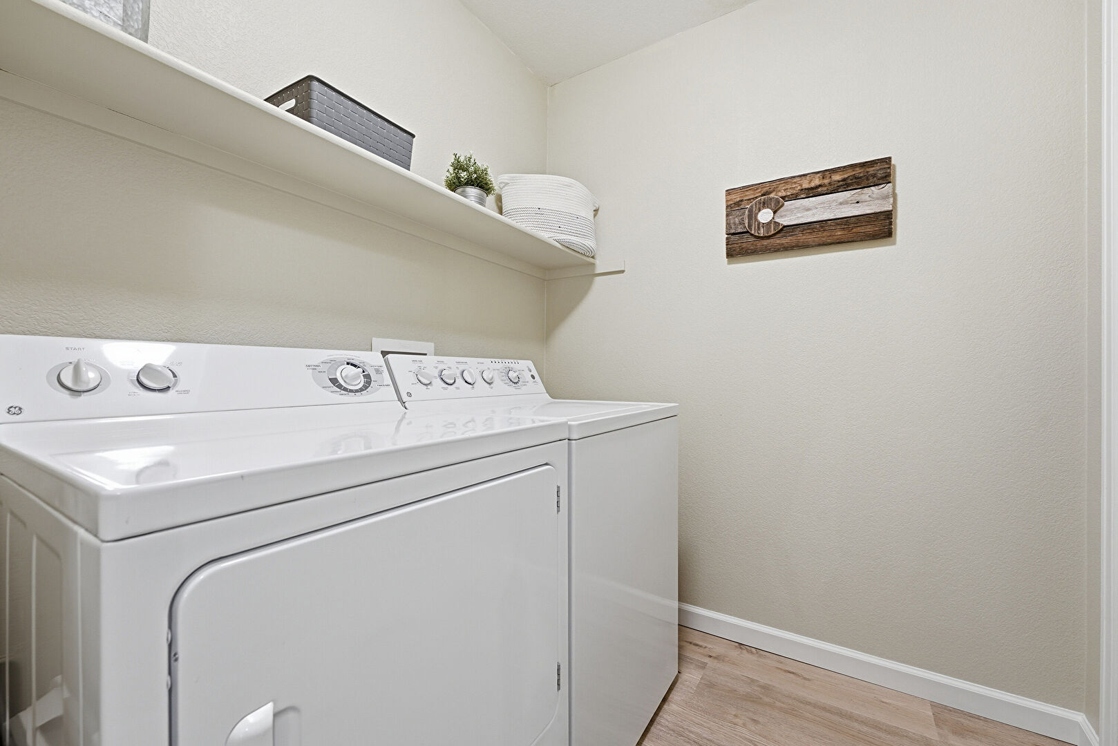 Baseboards Wall, Laundry, Washer Hookup, Wood Finish Floor, Drywall