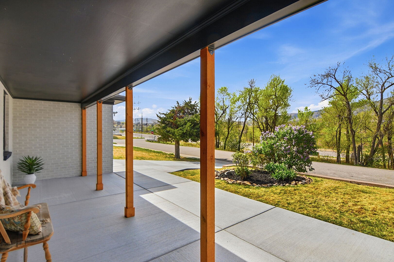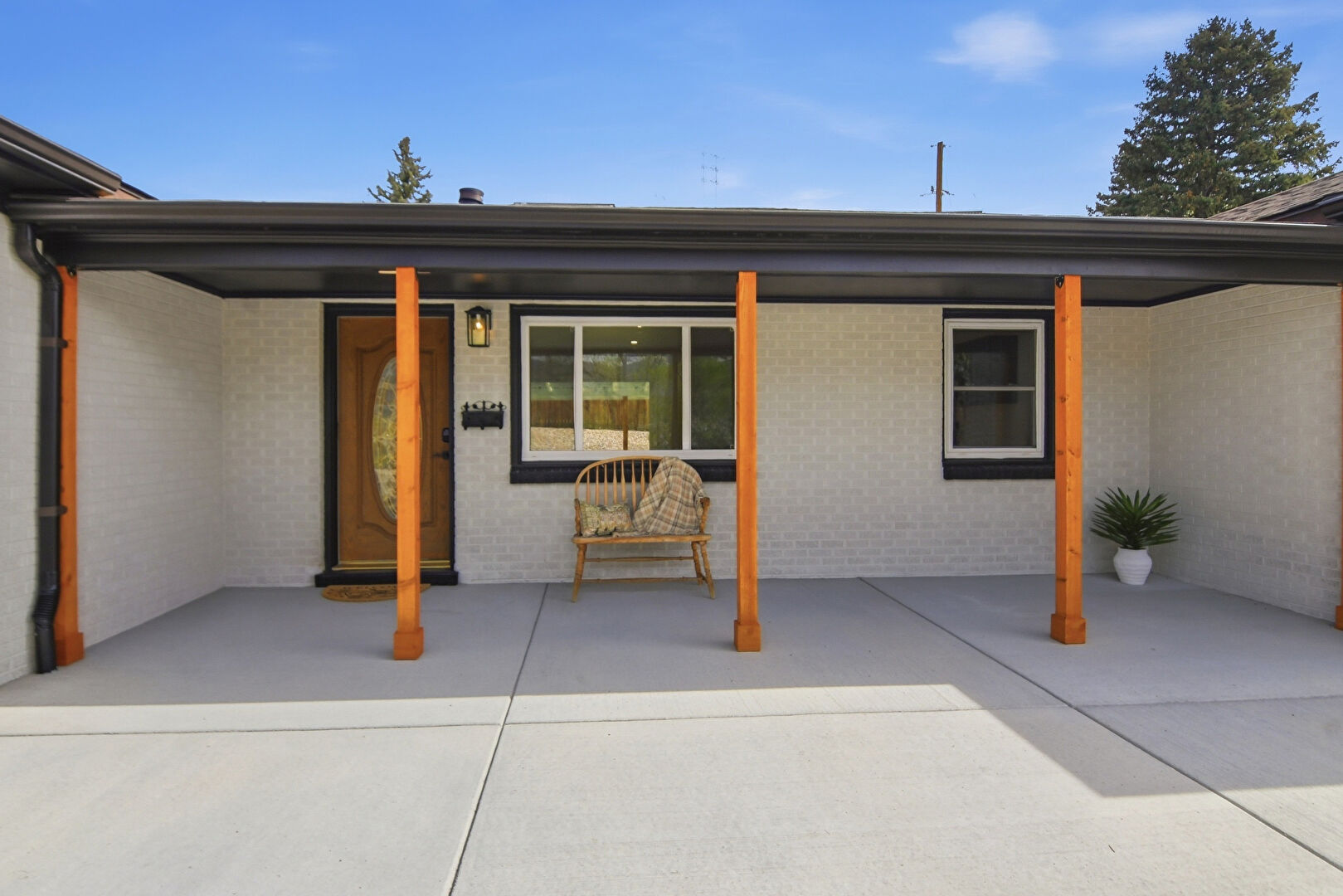 Brick Siding, Downspout, Driveway, Fence, Gutters, Mountain View, Parking Pad, Porch, Downspout, Driveway