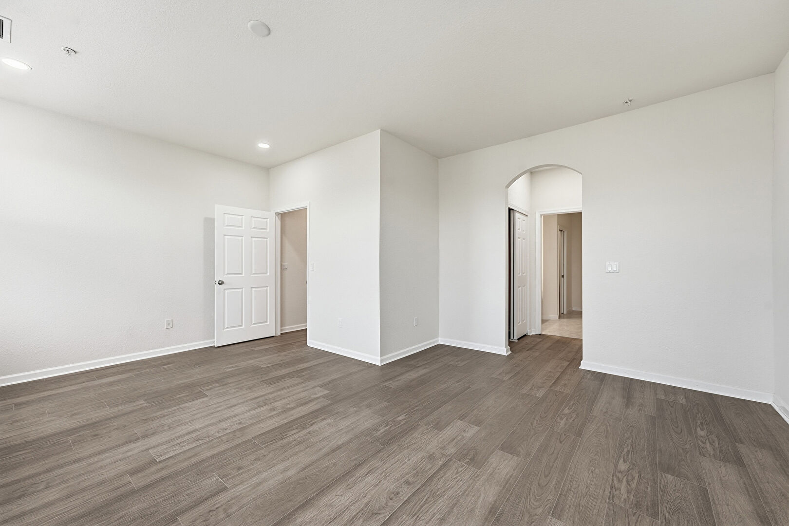 Arched Walkways, Baseboards Wall, Drywall, Recessed Lighting, Vent, Wood Finish Floor, Baseboards Wall, Natural Light