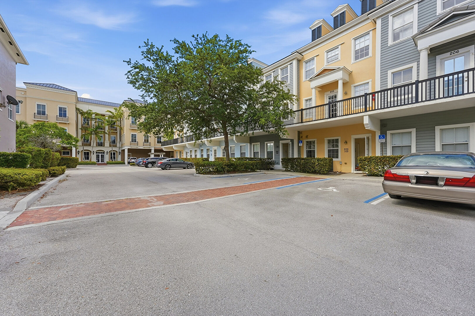 Curbs, Horizontal Siding, Parking Lot, Porch, Residential View, Sidewalks, Apartment Complex View, Street, Stucco Siding