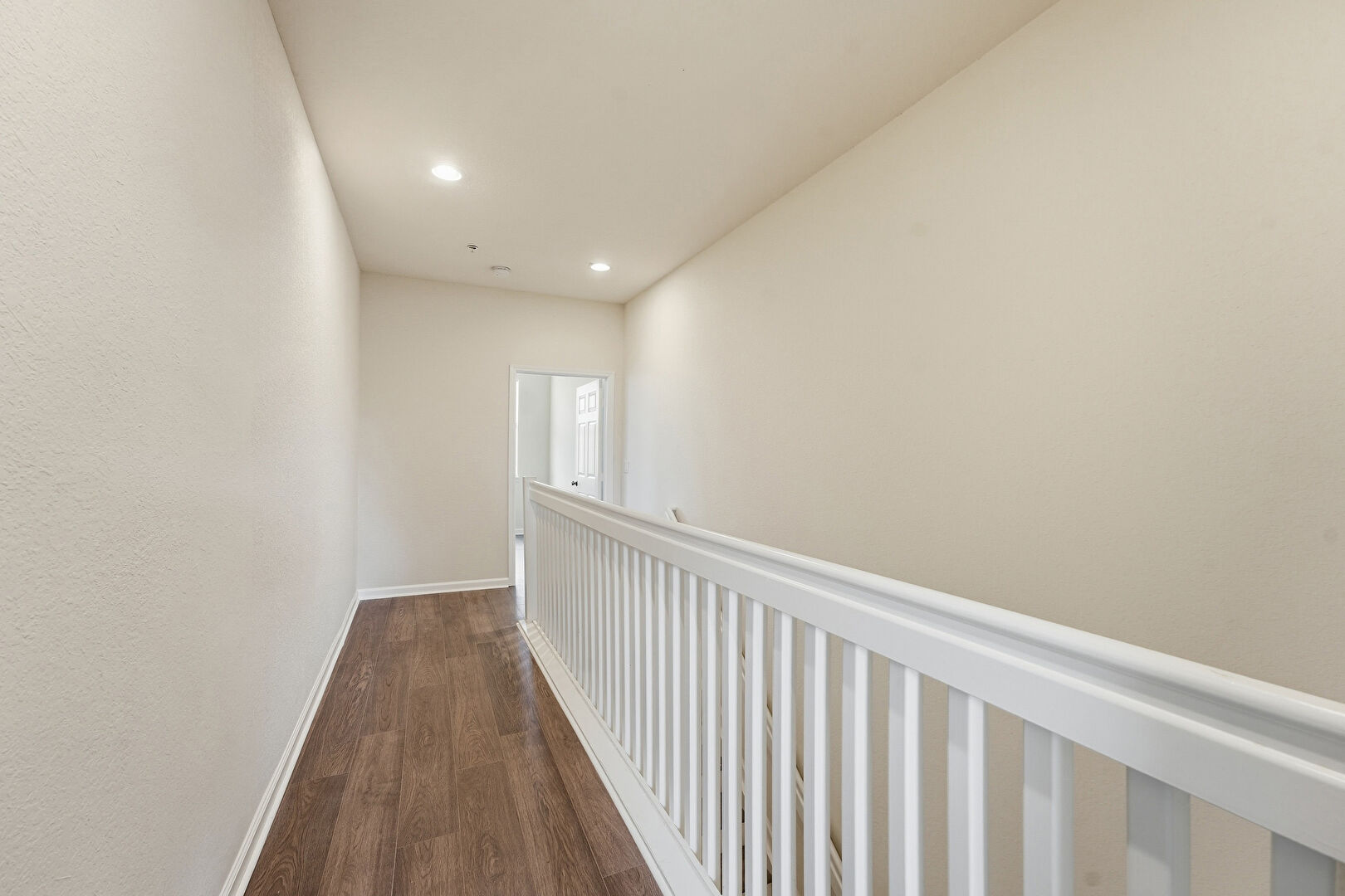 Baseboards Wall, Natural Light, Recessed Lighting, Textured Wall, Upstairs Landing, Wood Finish Floor