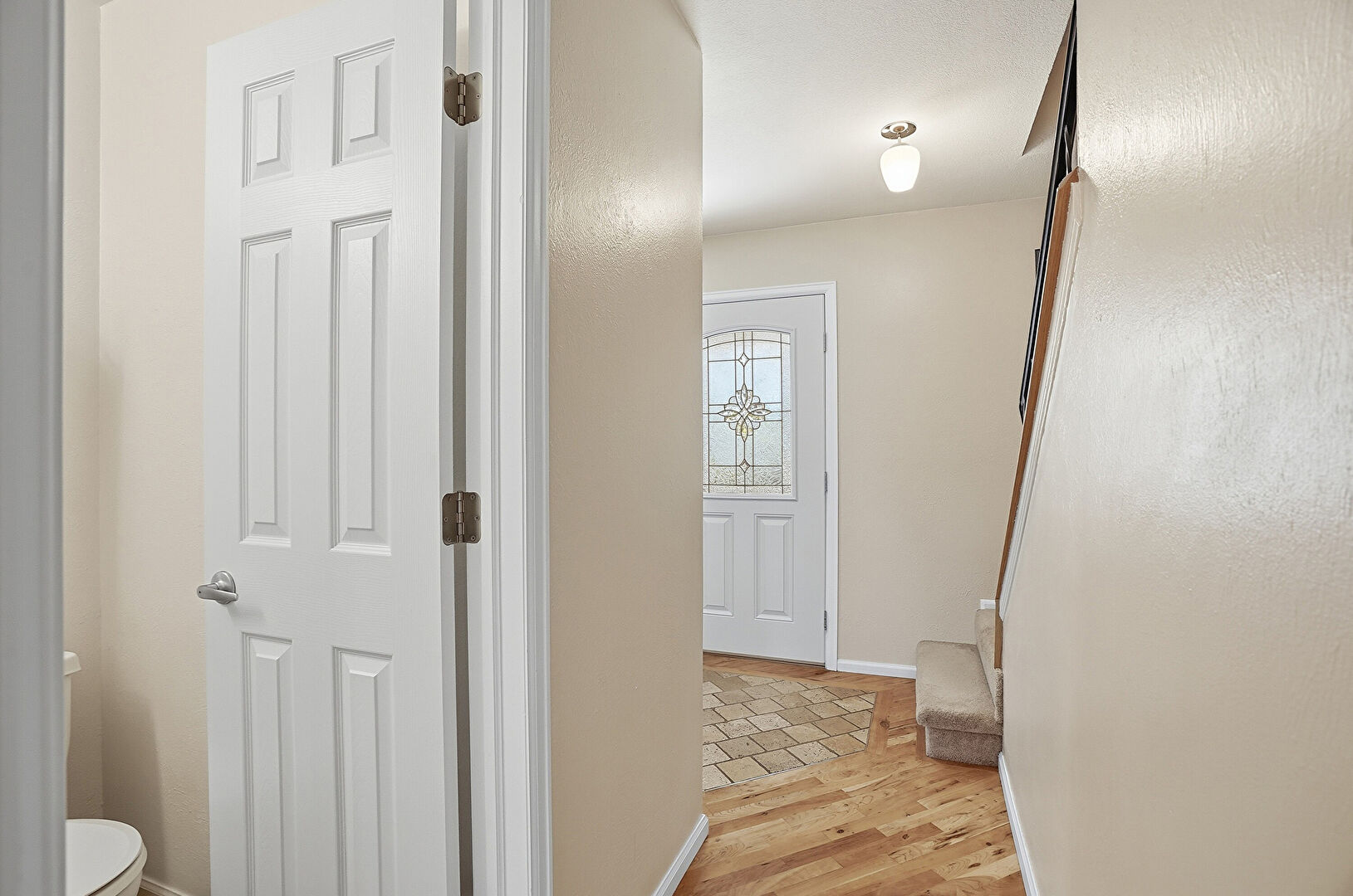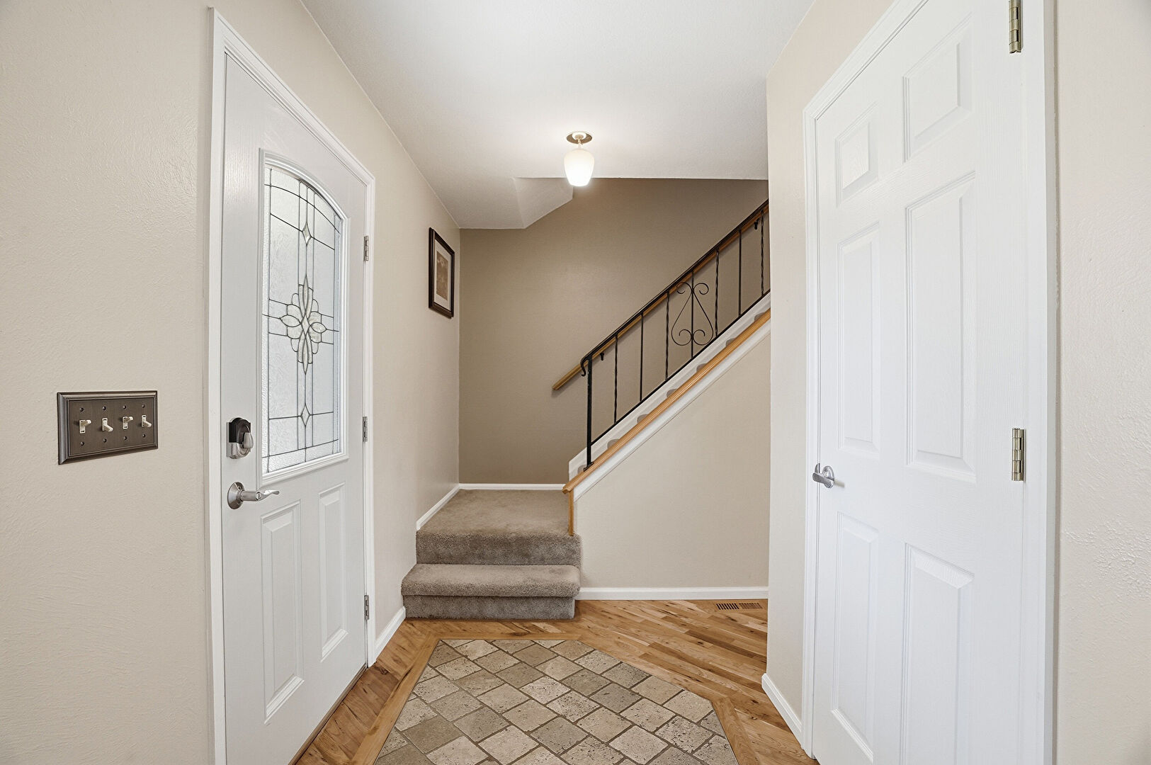 Baseboards Wall, Drywall, Stairs, Wood Finish Floor, Notable Chandelier, Stairs