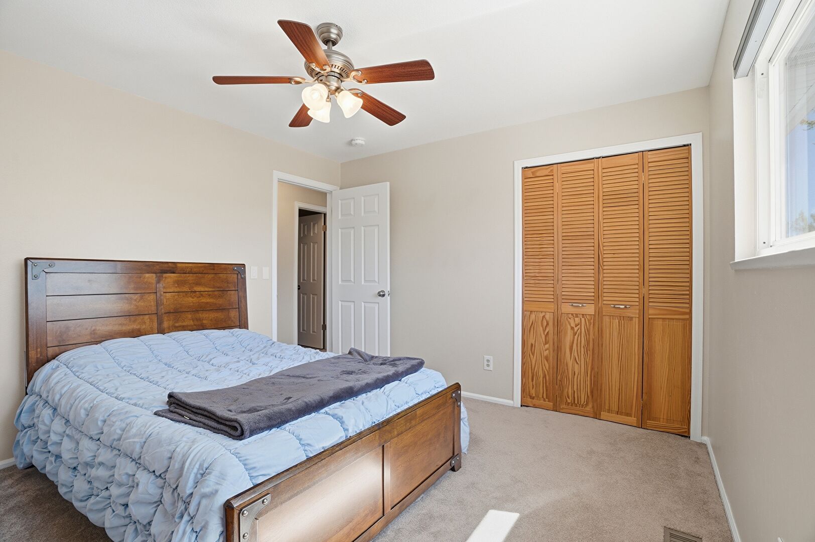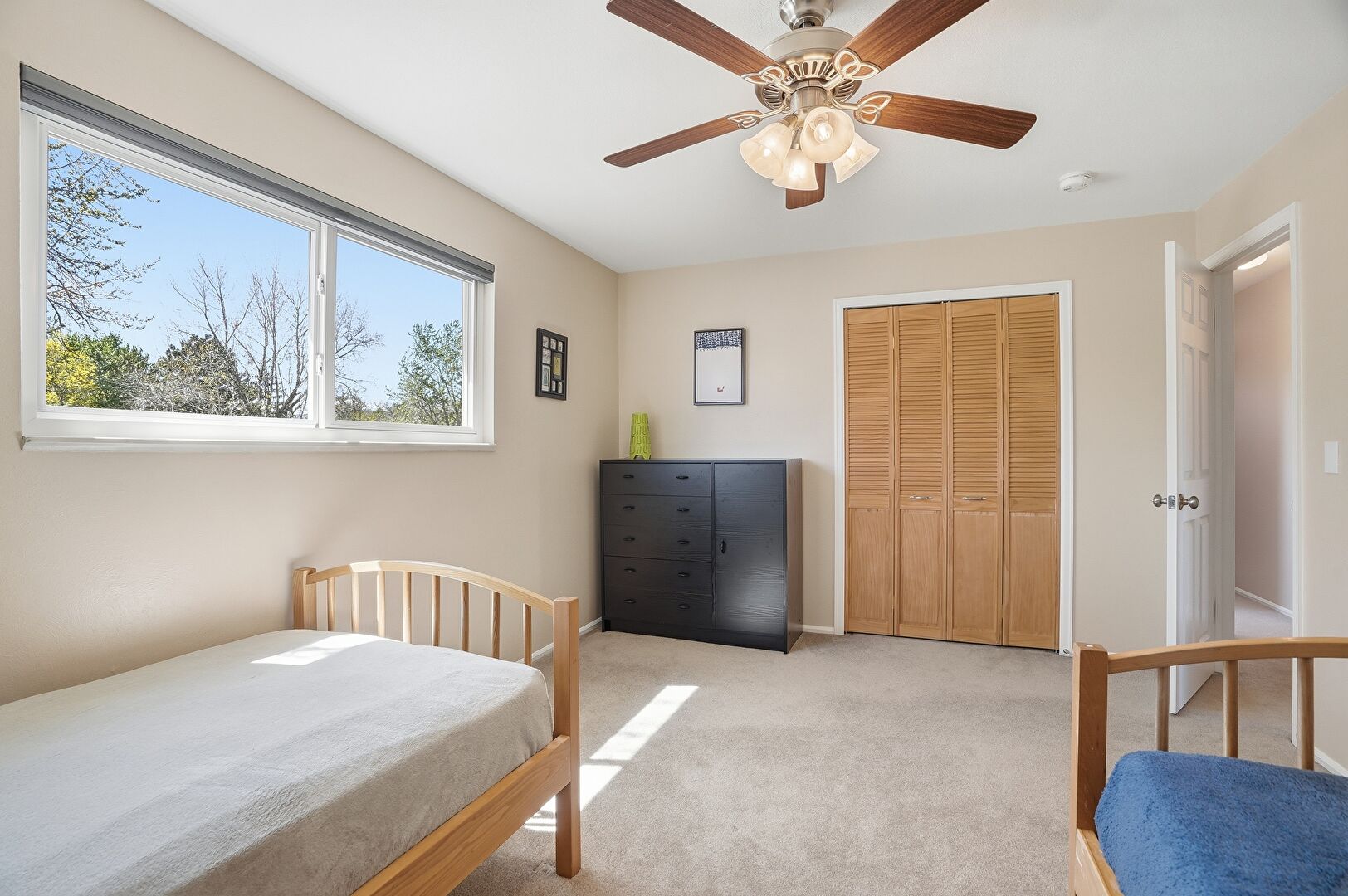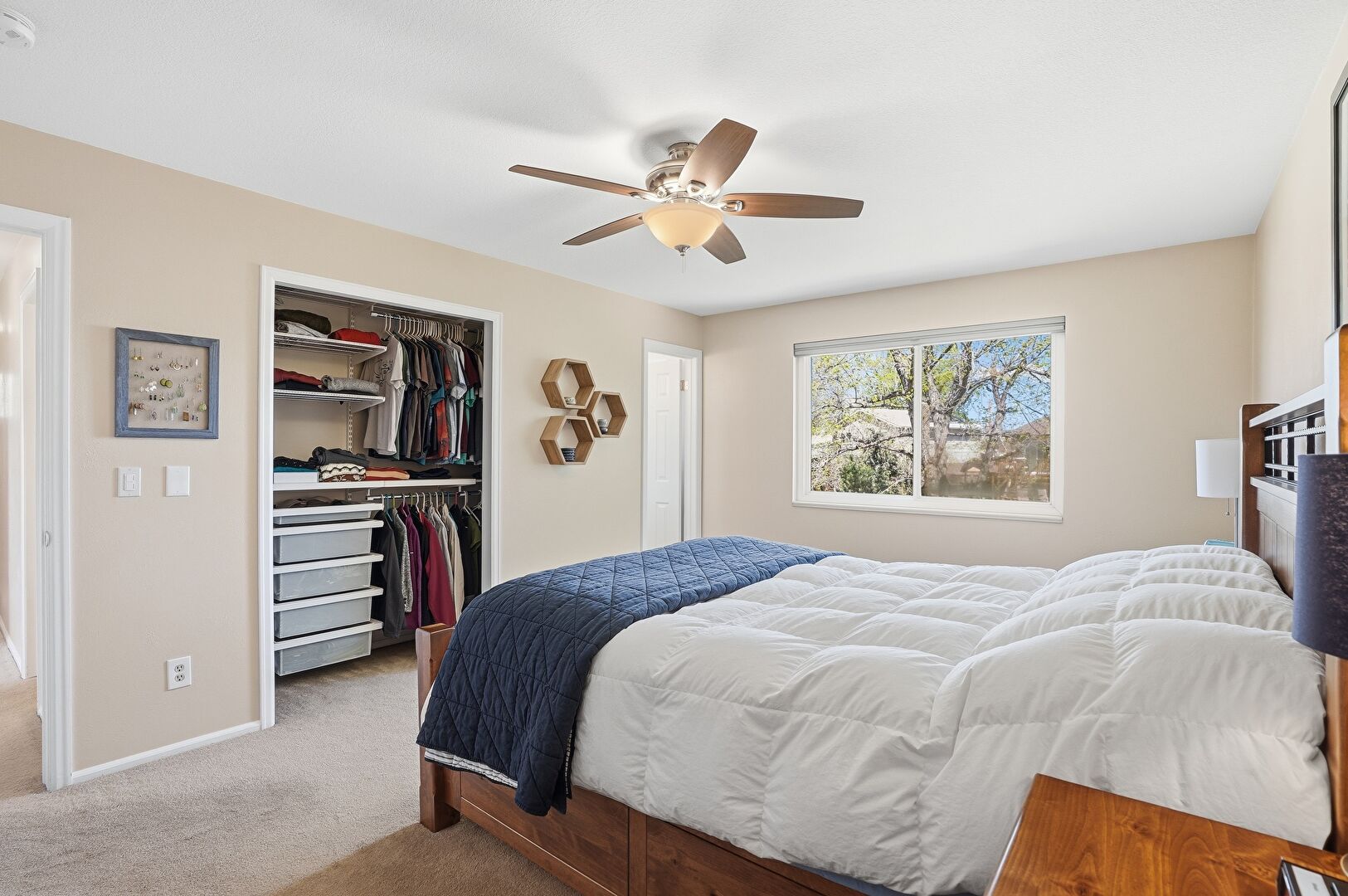 Baseboards Wall, Carpet, Ceiling Fan, Drywall, Natural Light, Smoke Carbon Monoxide Detector, Closet, Natural Light