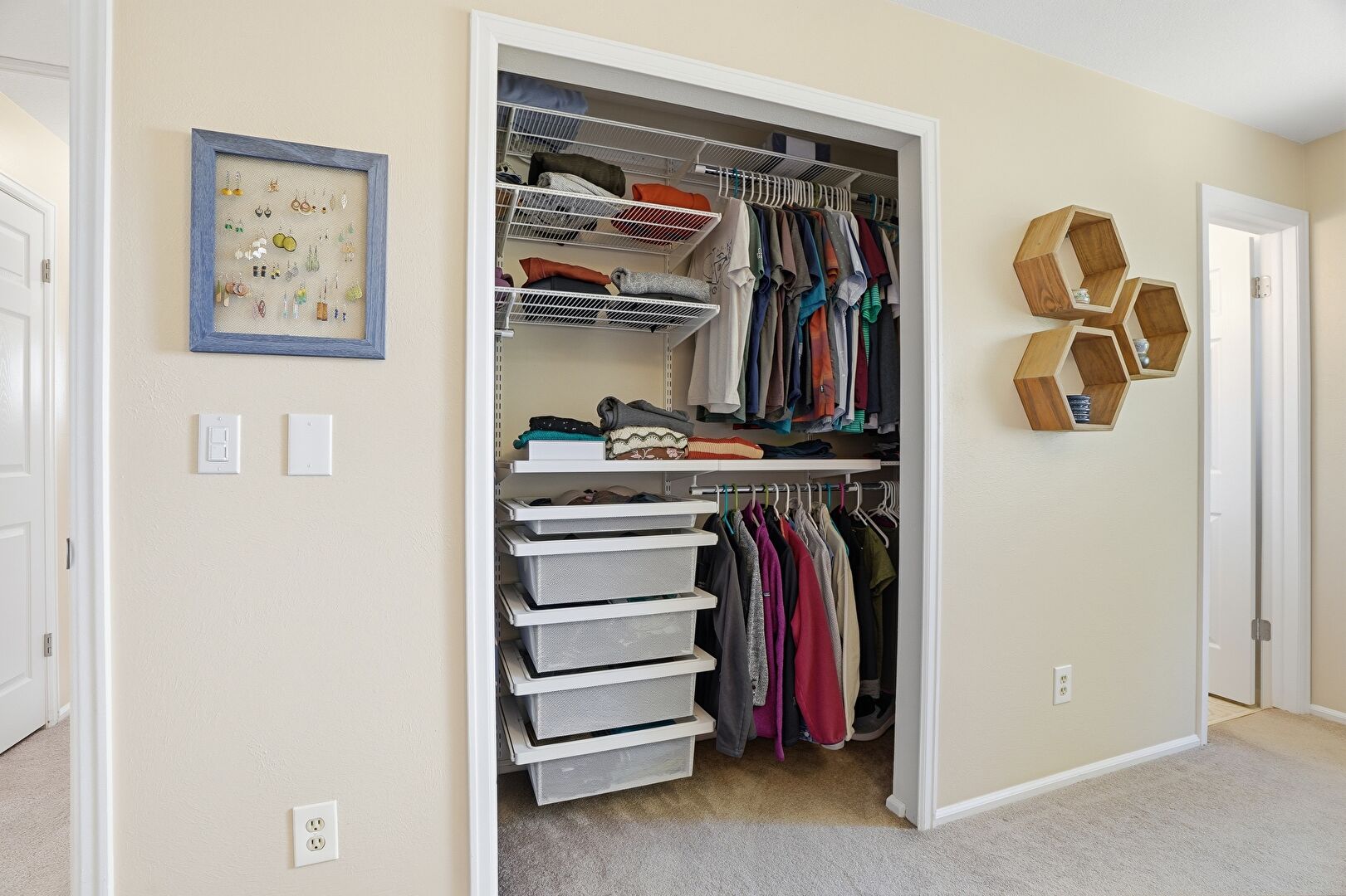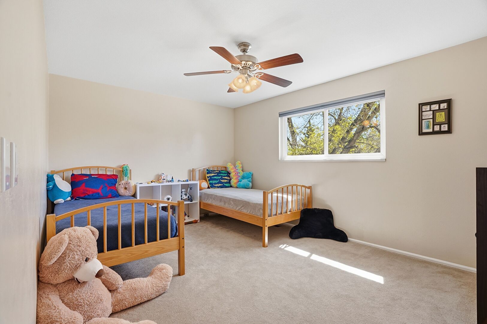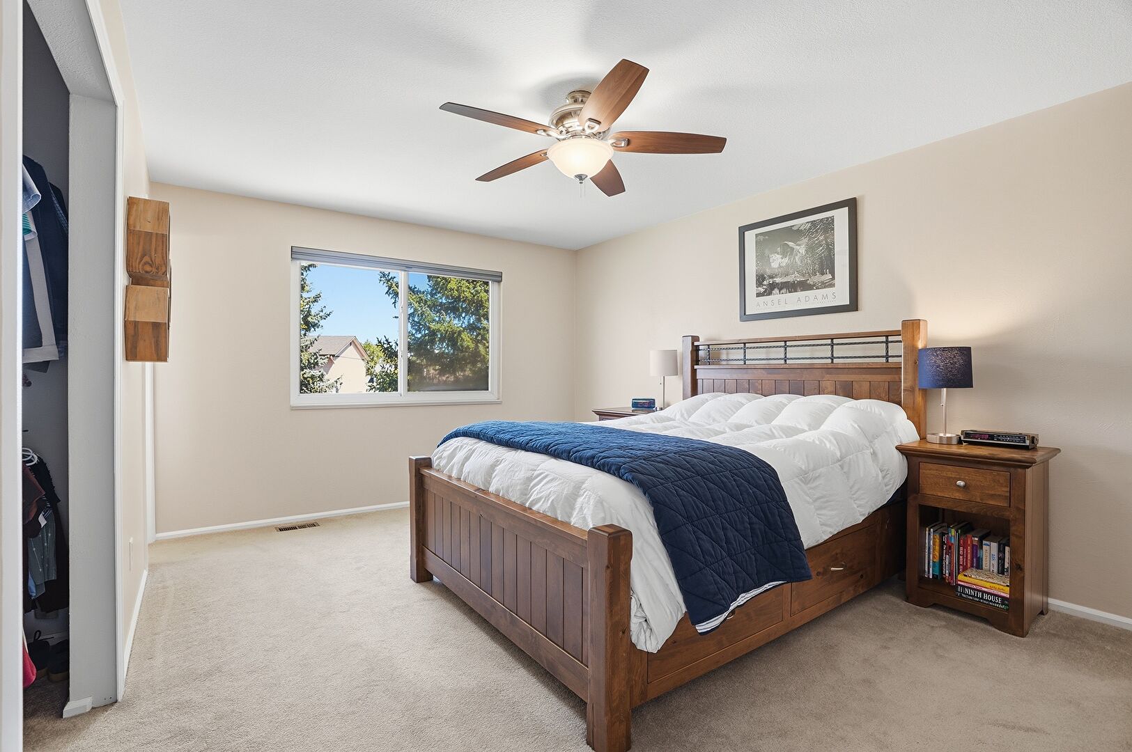 Baseboards Wall, Carpet, Ceiling Fan, Drywall, Natural Light, Smoke Carbon Monoxide Detector, Closet, Natural Light