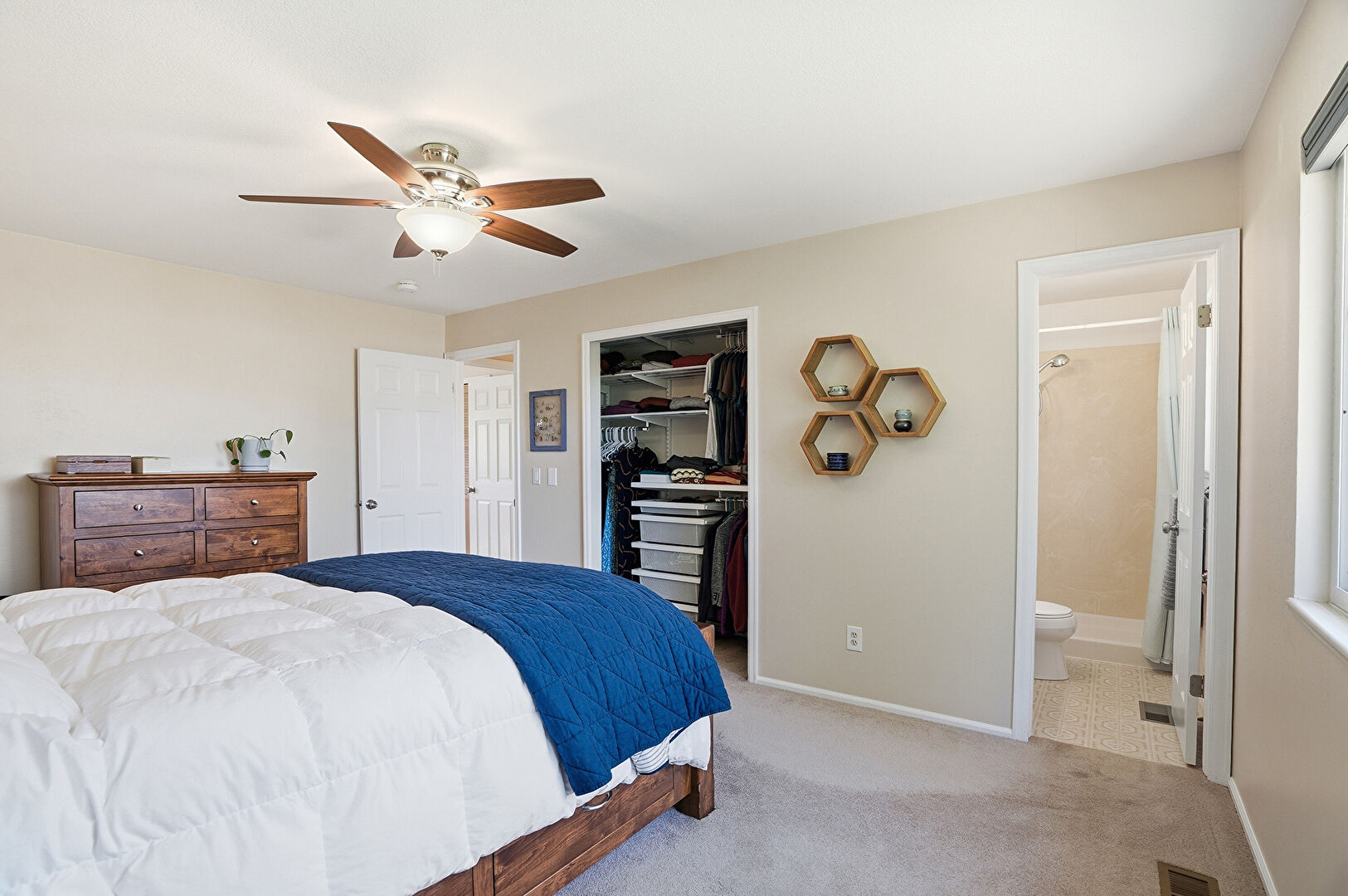 Baseboards Wall, Carpet, Ceiling Fan, Drywall, Ensuite Bathroom, Natural Light, Smoke Carbon Monoxide Detector, Vent, Walk In Closet, Carpet, Drywall