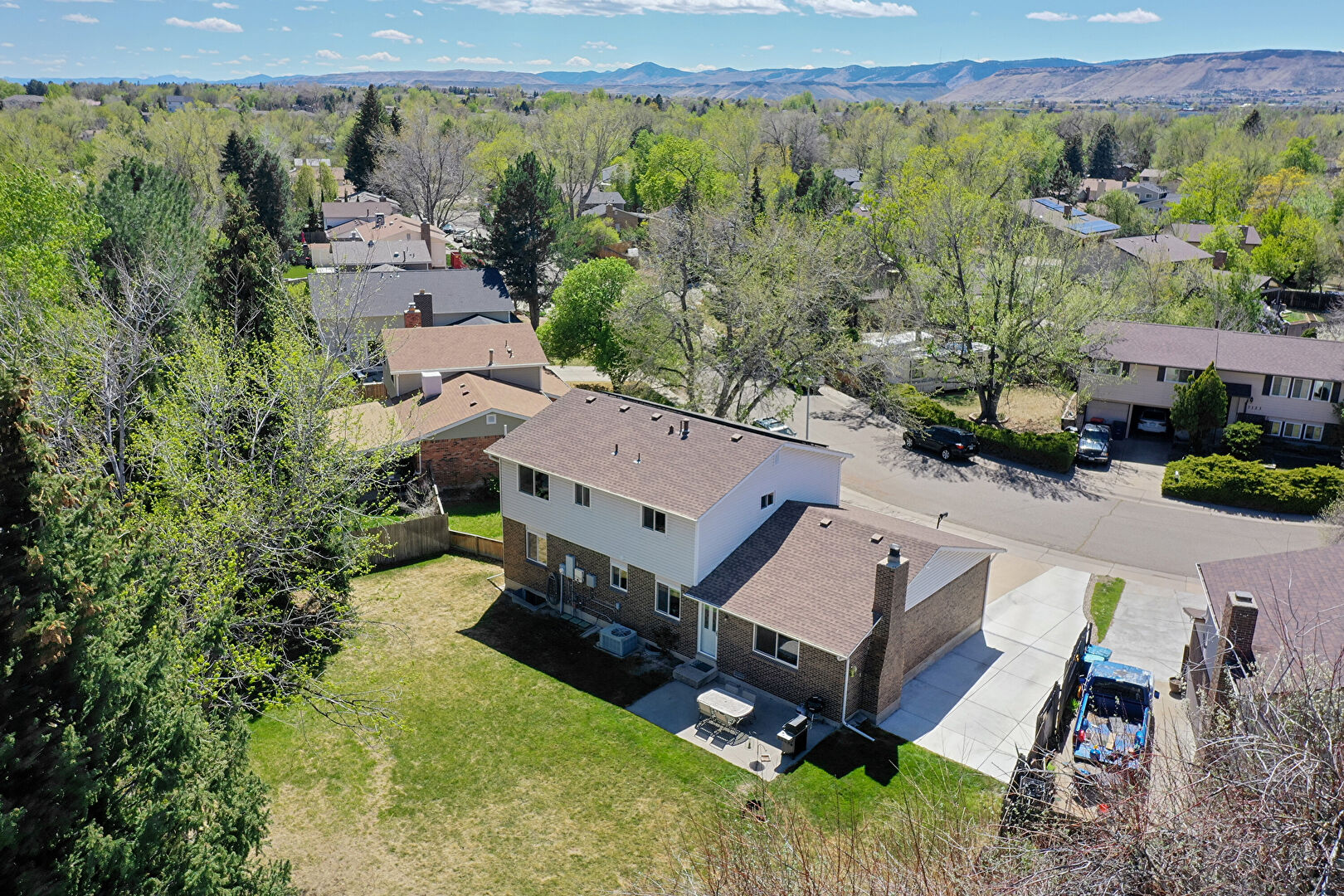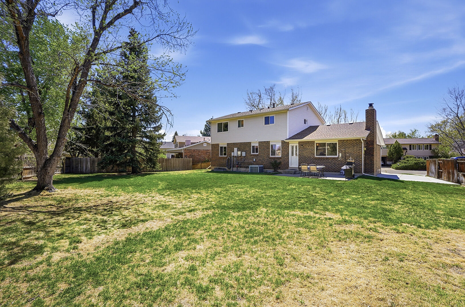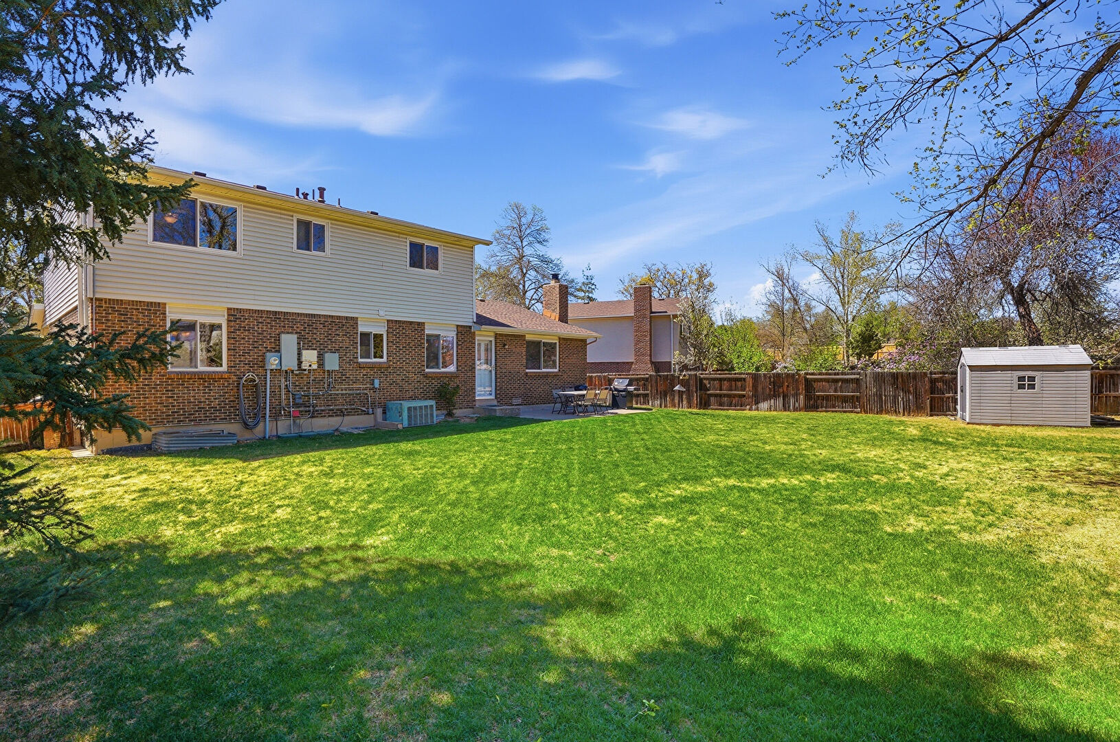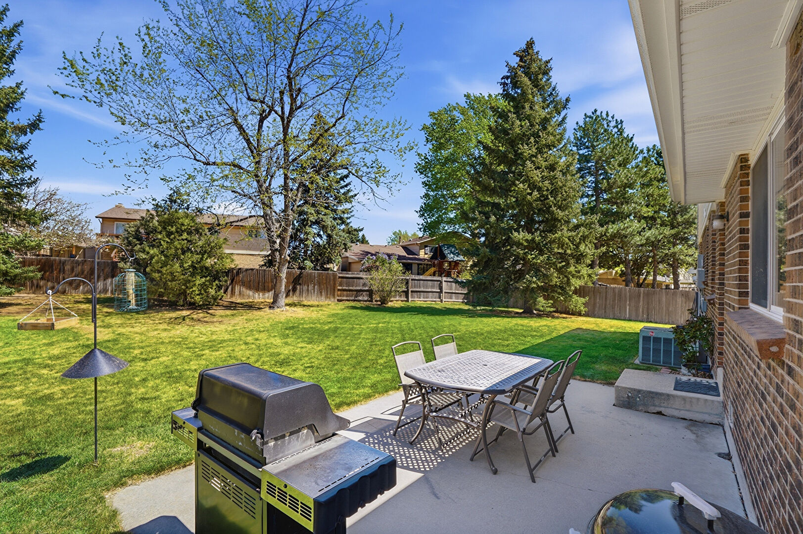 Brick Siding, Central Ac, Concrete Foundation, Downspout, Entry Steps, Fence, Grill, Gutters, Lawn, Outdoor Dining Area, Outdoor Structure, Patio, Playground, Shed, Chimney, Fence, Lawn, Patio