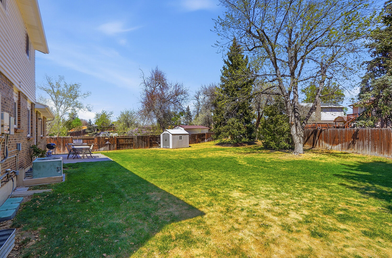 Central Ac, Fence, Grill, Lawn, Outdoor Structure, Residential View, Shed, Solar Power Inverter, Lawn, Patio, Shed, Water View