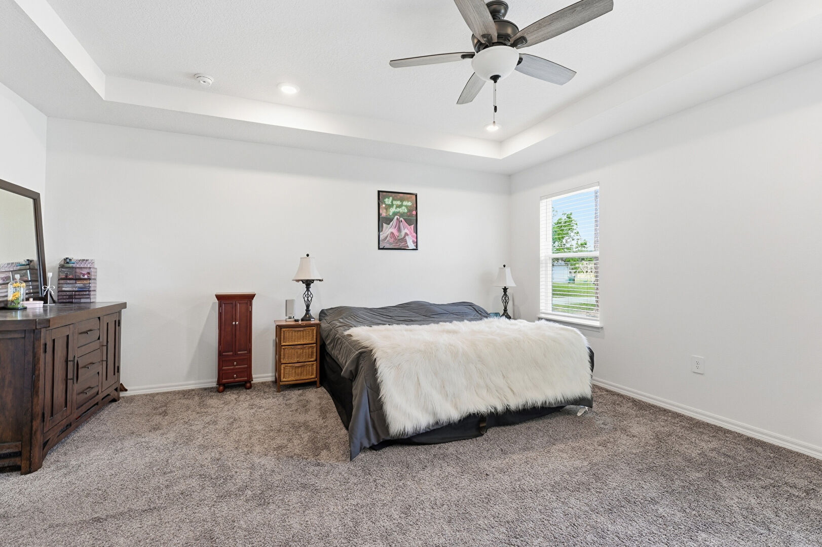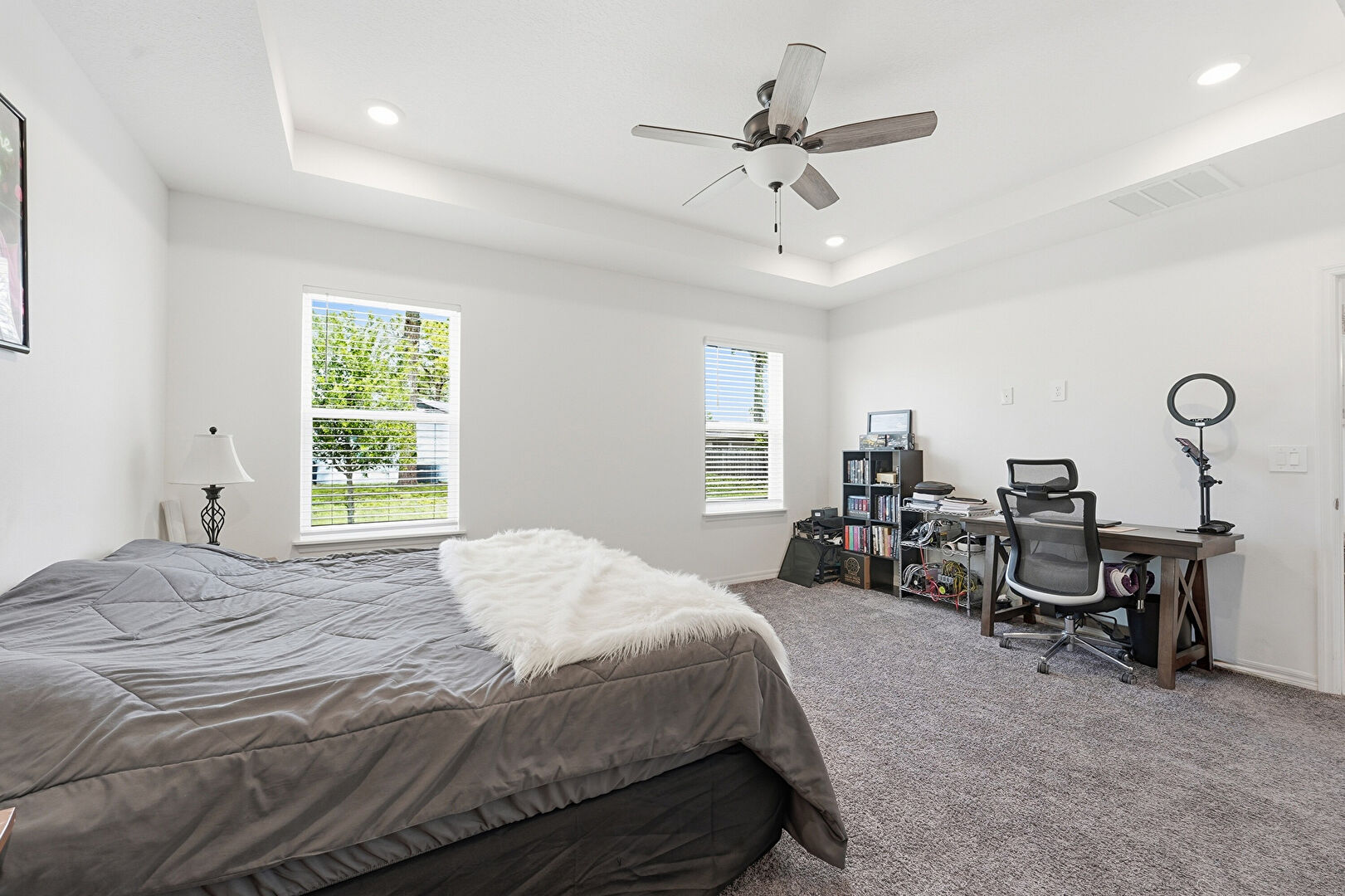 Baseboards Wall, Carpet, Ceiling Fan, Drywall, Natural Light, Office Area, Recessed Lighting, Smoke Carbon Monoxide Detector, Tray Ceiling, Vent, Baseboards Wall, Ceiling Fan, Drywall