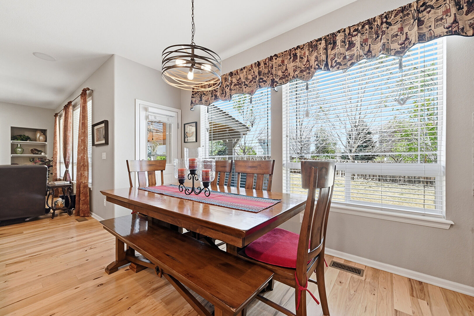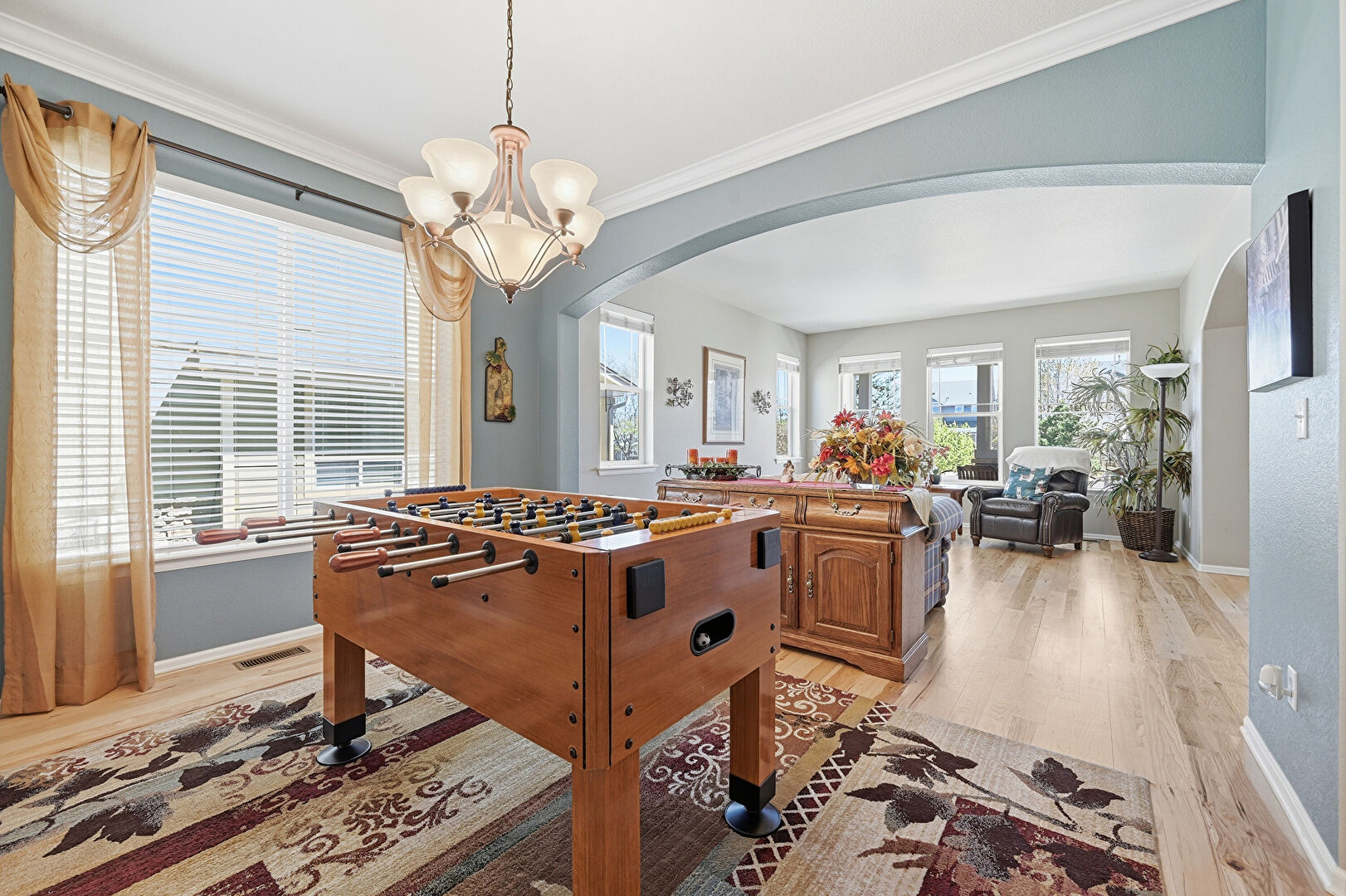 Baseboards Wall, Drywall, Notable Chandelier, Vent, Wood Finish Floor, Natural Light