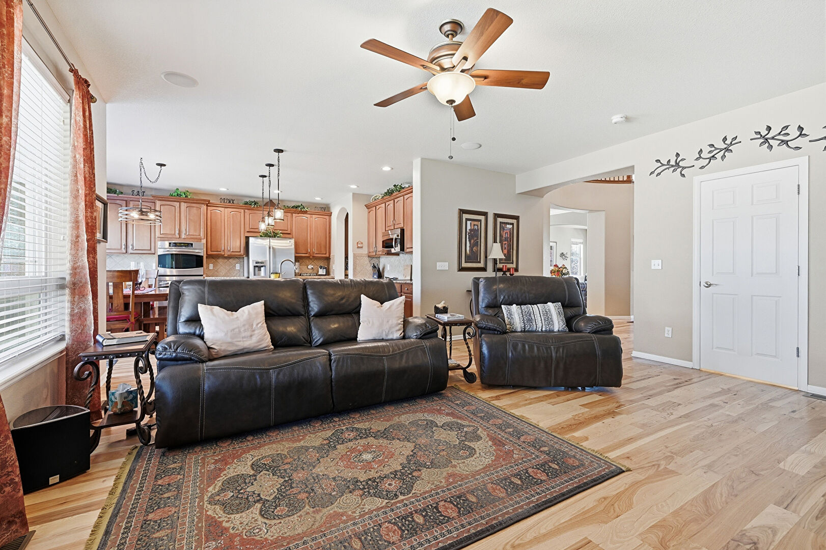 Arched Walkways, Baseboards Wall, Built In Shelves, Ceiling Fan, Crown Molding, Drywall, Fireplace, L Shaped Kitchen, Natural Light, Notable Chandelier, Recessed Lighting, Vent, Wood Finish Floor, Baseboards Wall, Crown Molding, Natural Light, Notable Chandelier, Recessed Lighting, Stairs, Wood Finish Floor