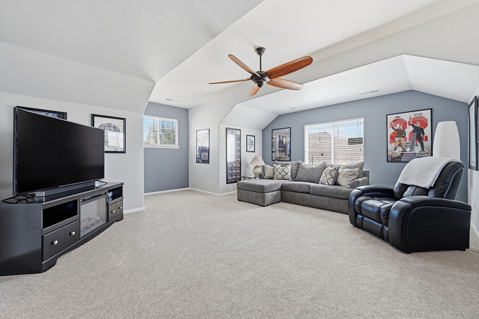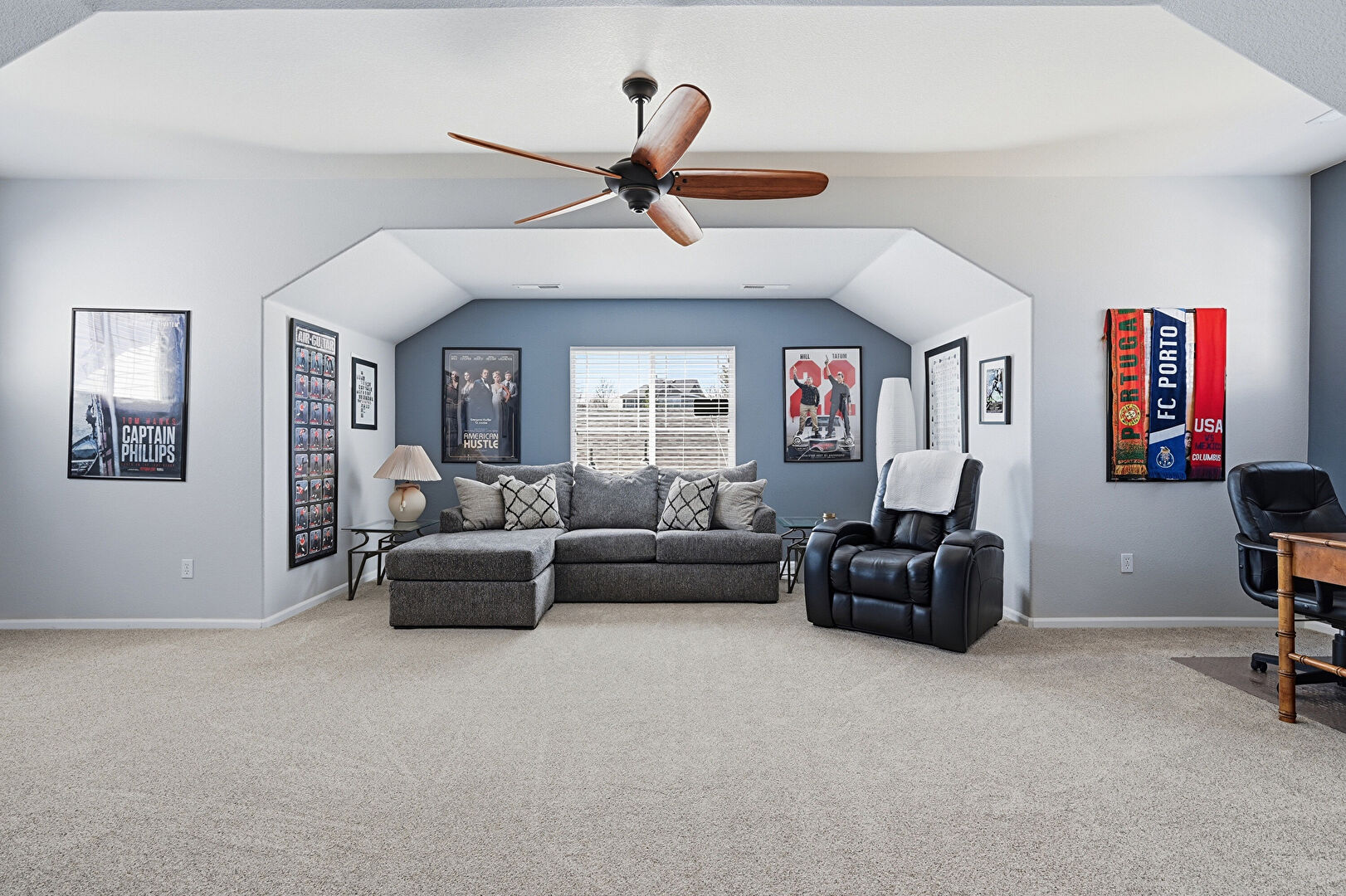Baseboards Wall, Bonus Room, Carpet, Cathedral Ceiling, Ceiling Fan, Closet, Drywall, Ensuite Bathroom, Natural Light, Office Area, Smoke Carbon Monoxide Detector, Vaulted Ceiling, Vent, Carpet, Ceiling Fan, Closet, Drywall, Natural Light, Vent