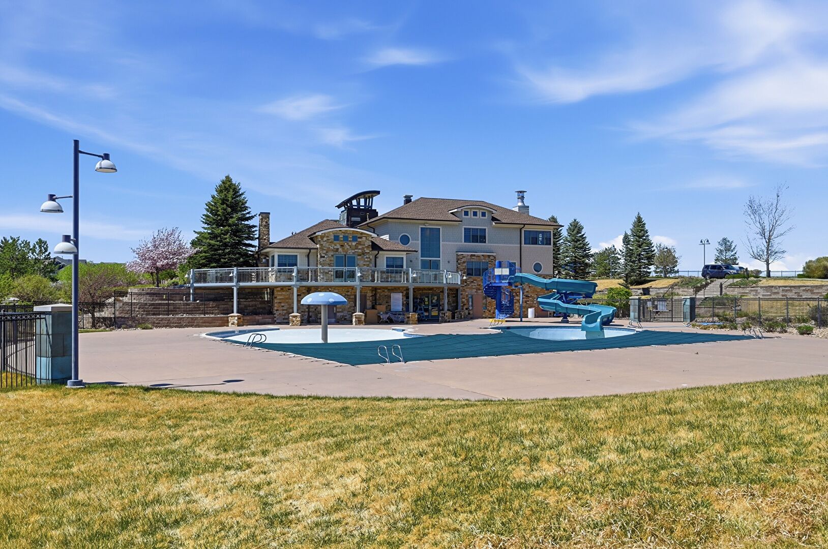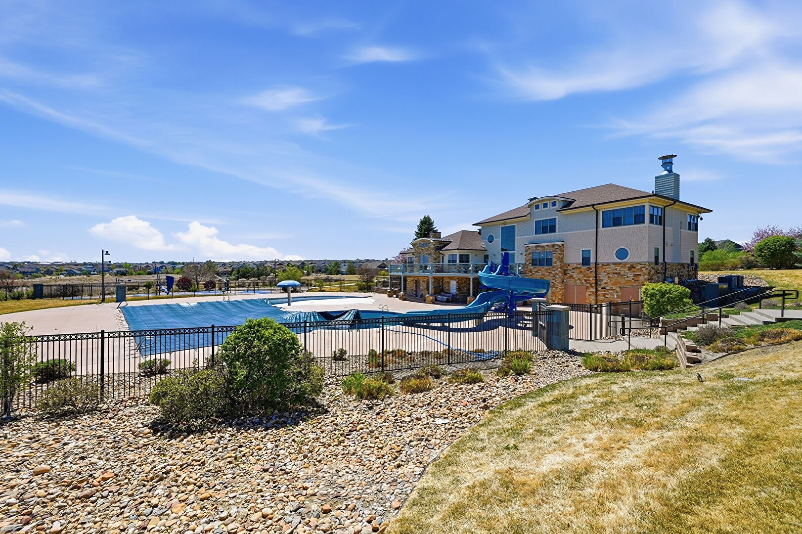 Balcony, Fence, Pool, Satellite Dish, Water Slide, Lawn, Patio