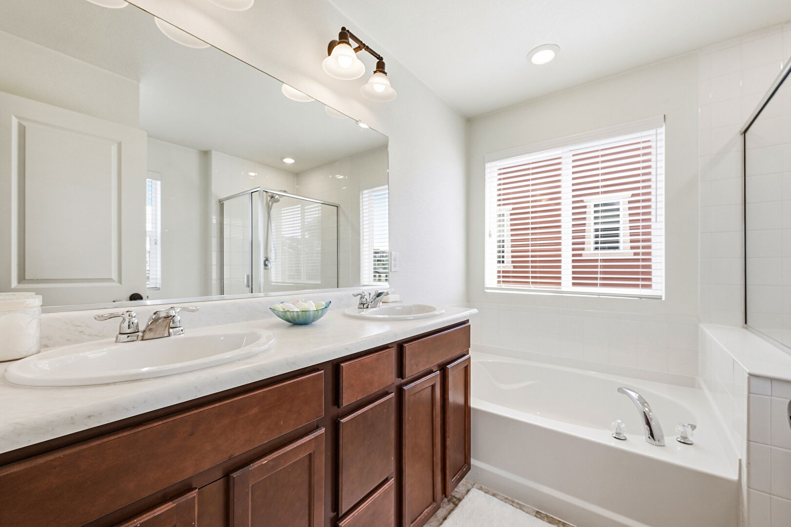 Drywall, Full Bathroom, Half Bathroom, Natural Light, Recessed Lighting, Vanity, Baseboards Wall, Double Vanity, Drywall