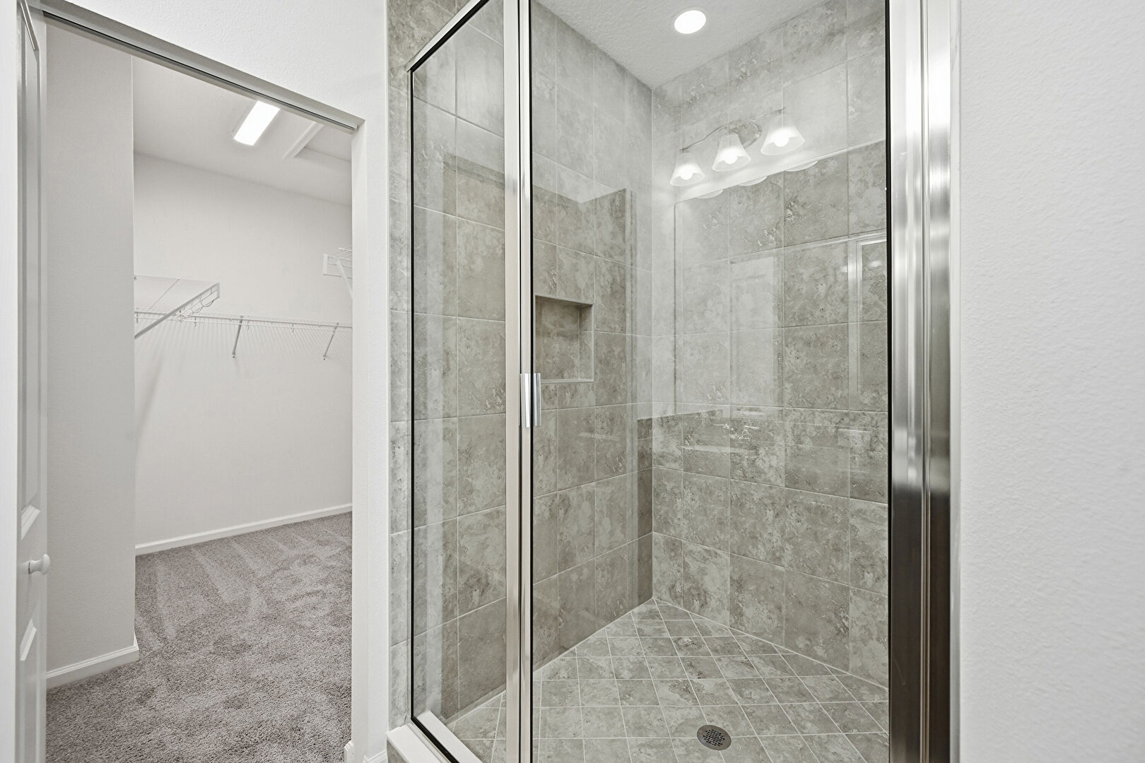 Baseboards Wall, Carpet, Closet, Drywall, Full Bathroom, Recessed Lighting, Tile Floor, Vent, Walk In Closet, Double Vanity, Recessed Lighting