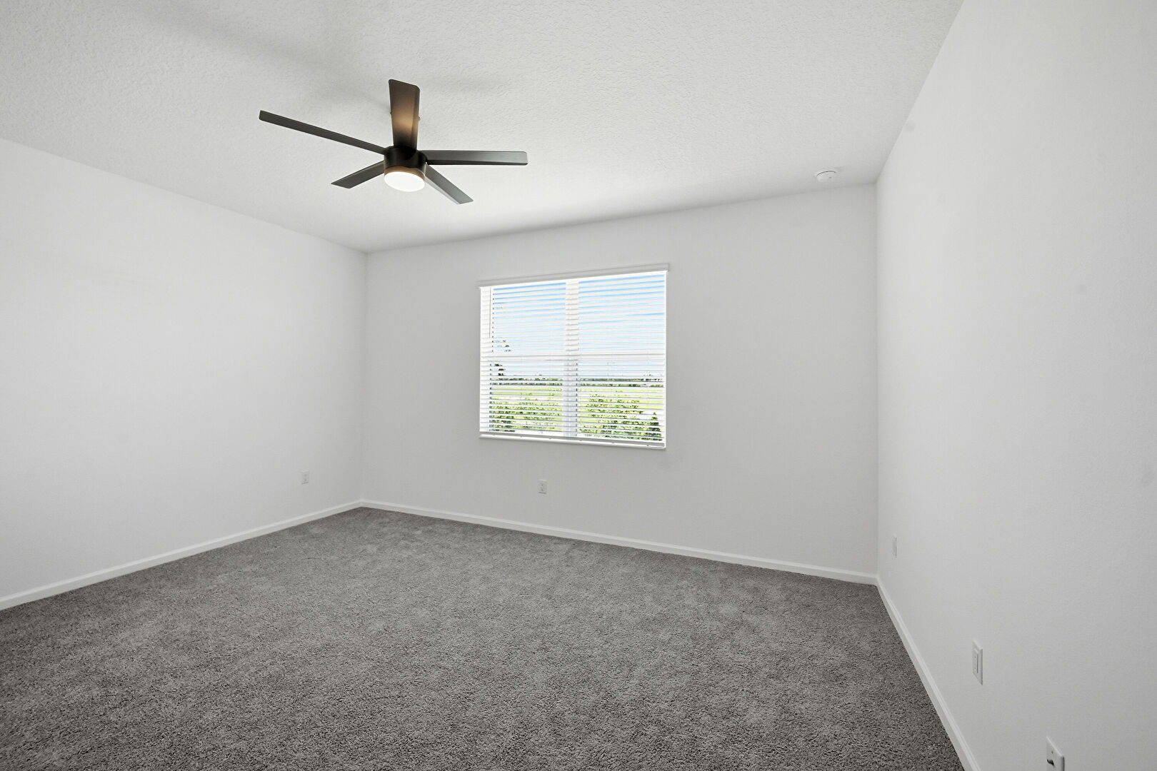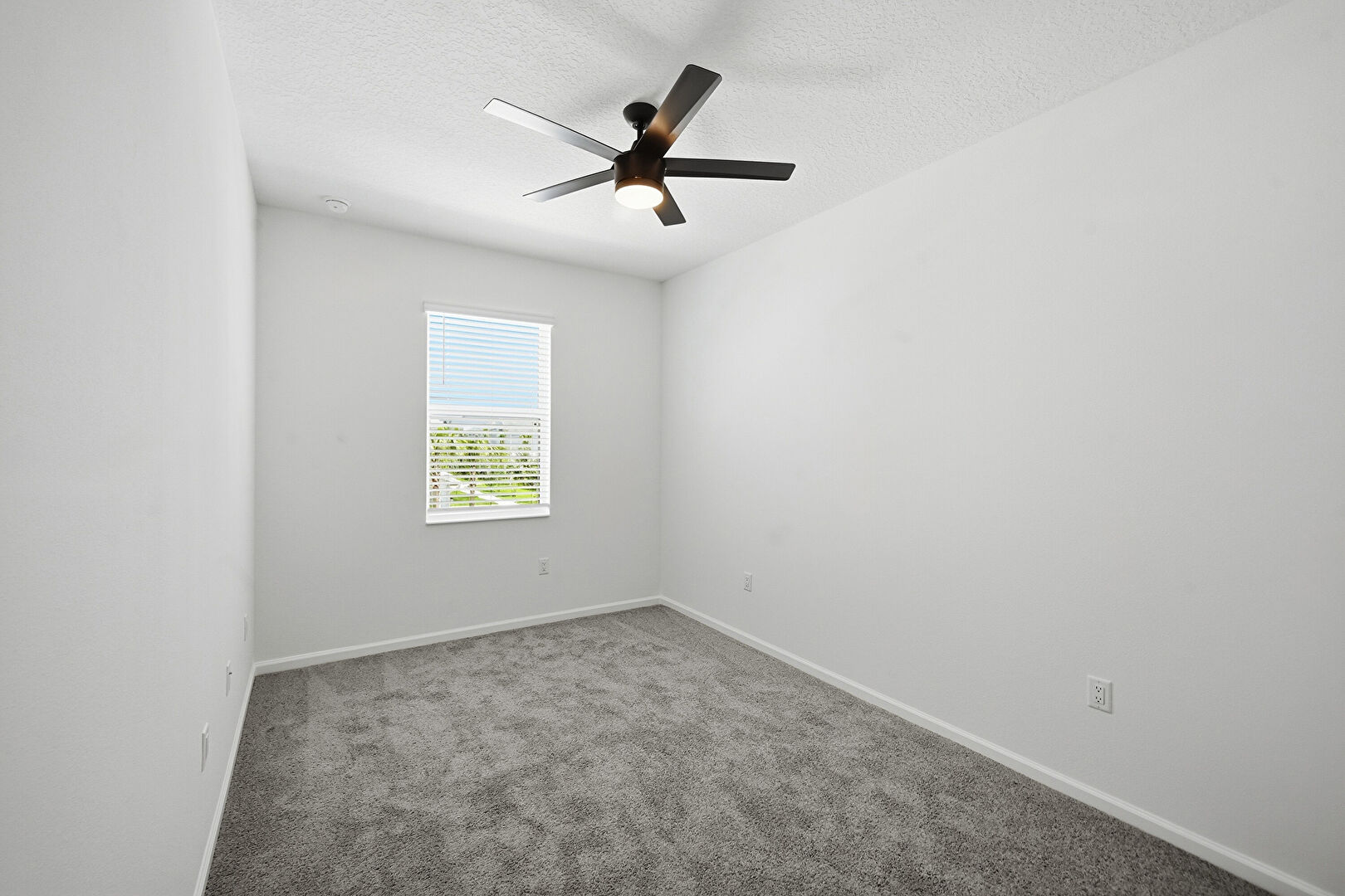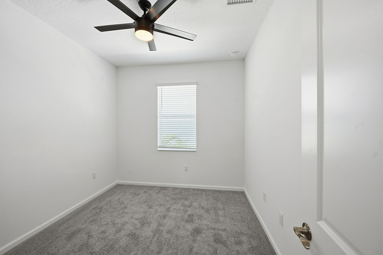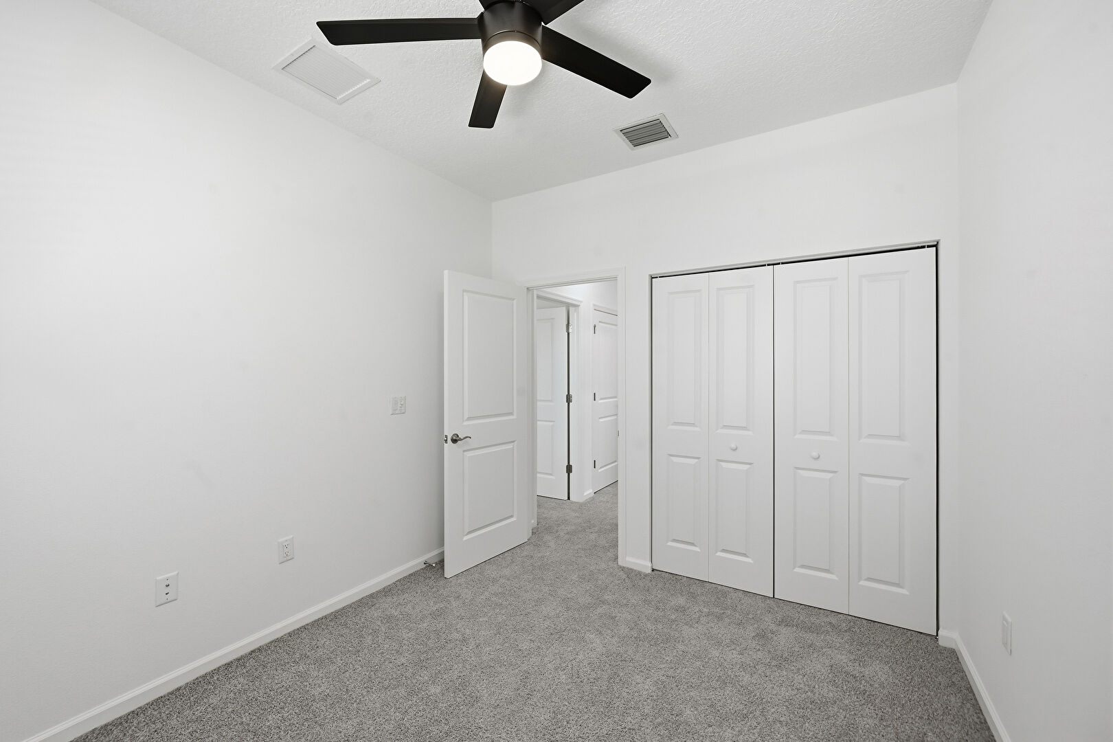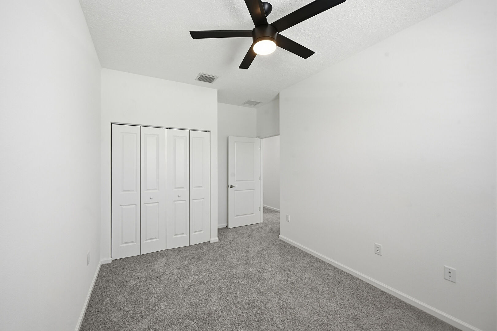 Baseboards Wall, Carpet, Ceiling Fan, Closet, Drywall, Natural Light, Textured Ceiling, Vent, Ceiling Fan, Drywall