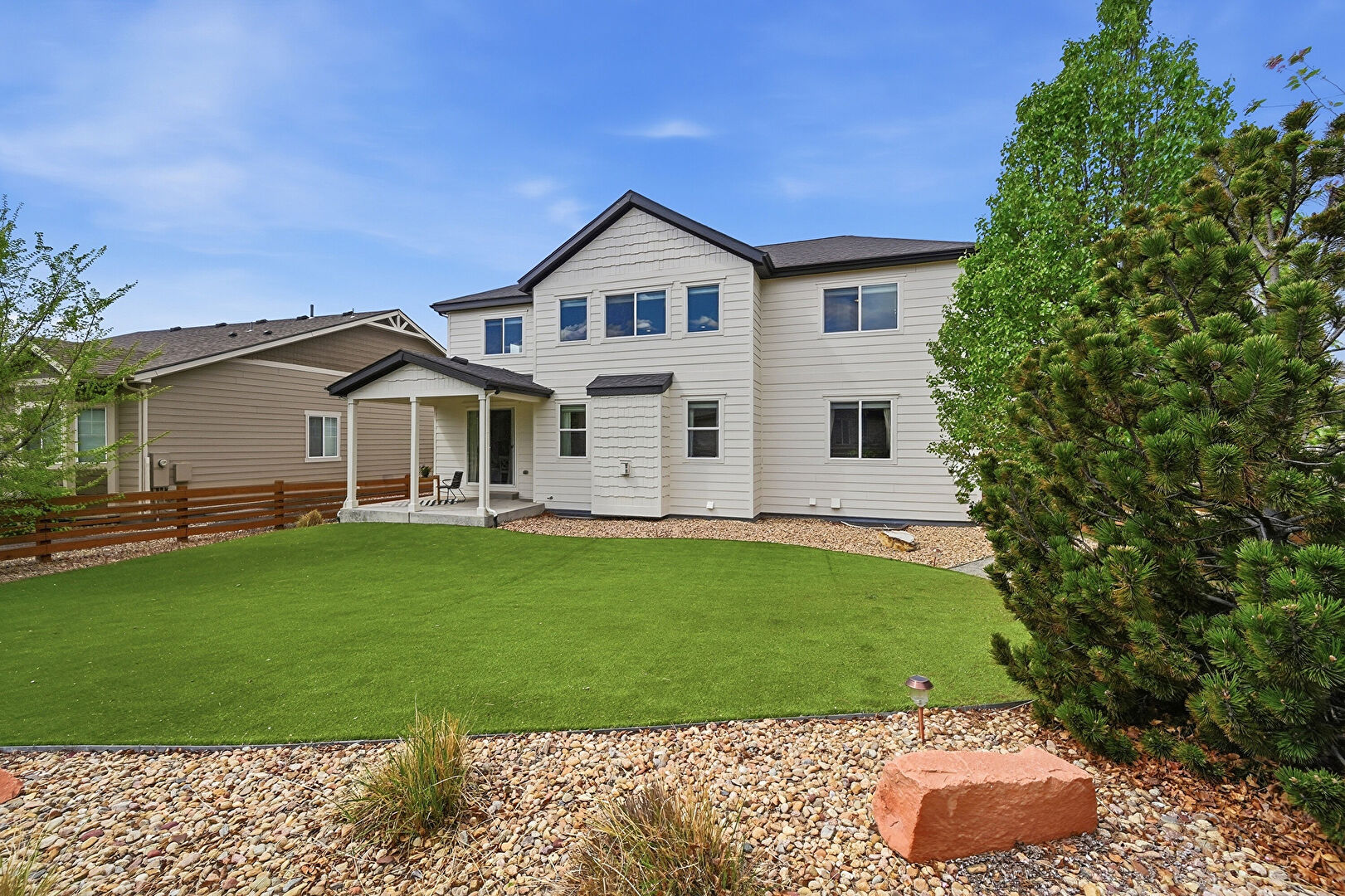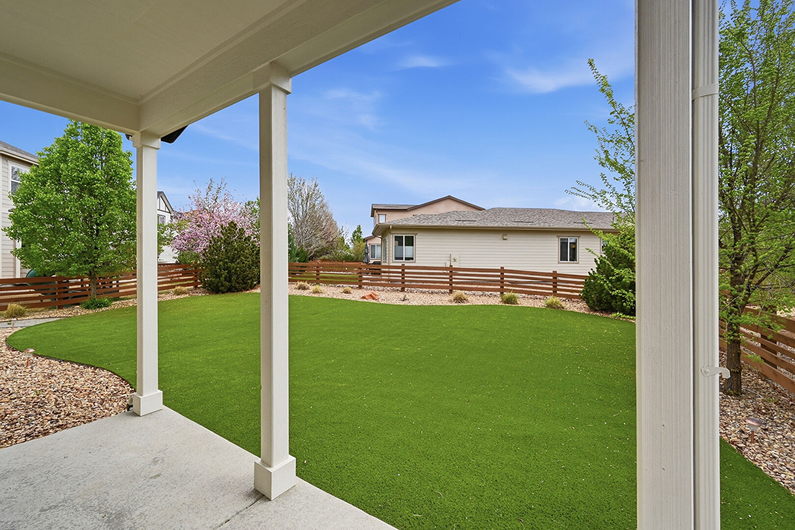 Concrete Foundation, Fence, Horizontal Siding, Lawn, Patio, Porch, Shake Shingle Siding, Concrete Foundation, Fence, Lawn