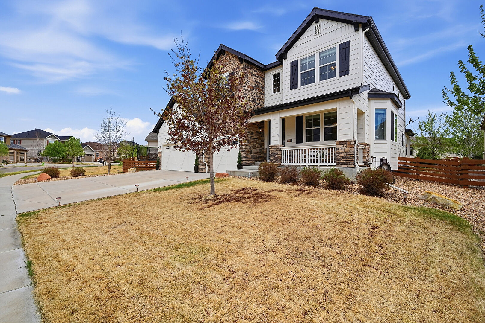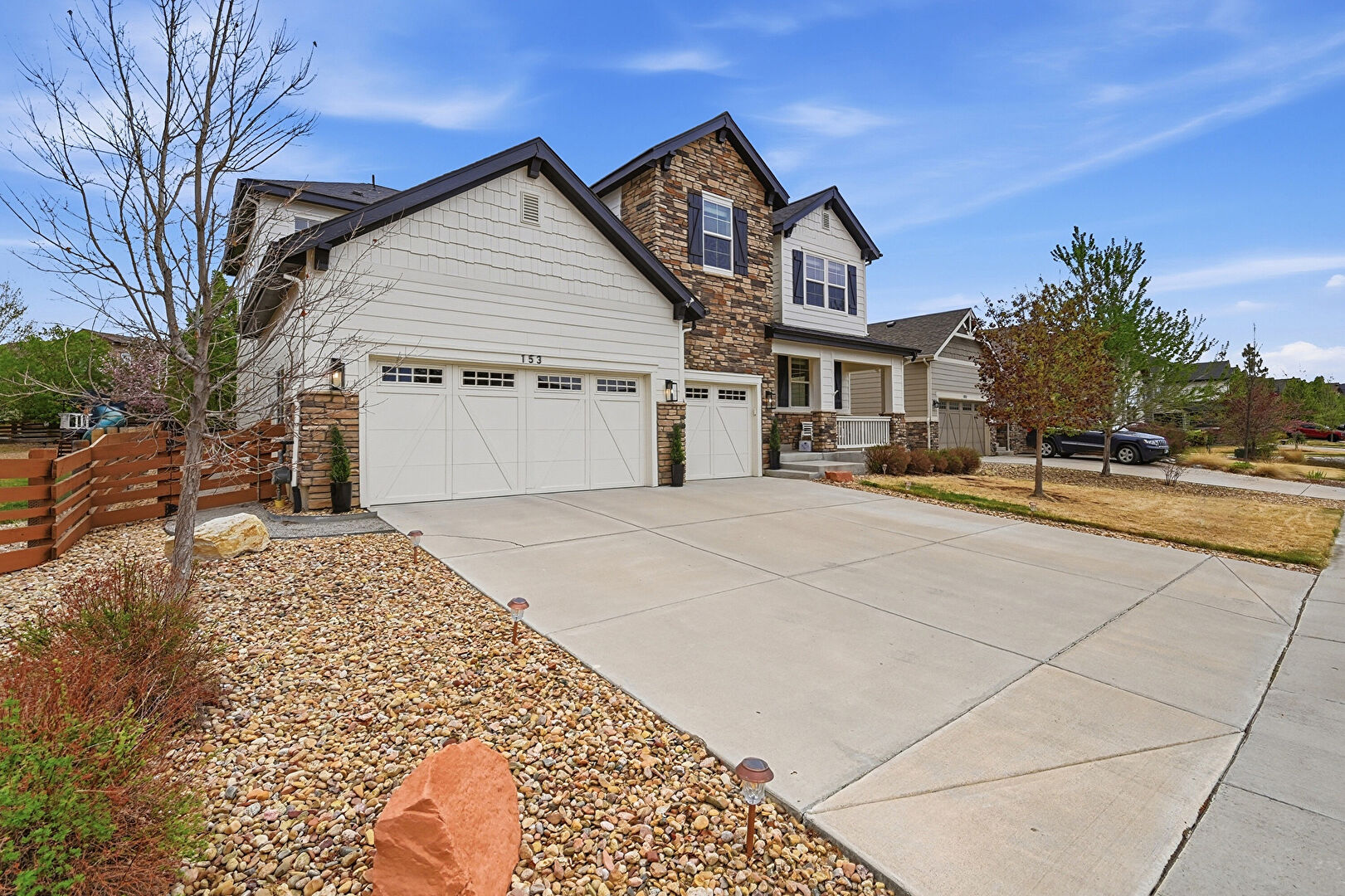 Built In Garage, Concrete Foundation, Downspout, Driveway, Fence, Gutters, Horizontal Siding, Lawn, Porch, Residential View, Shake Shingle Siding, Stone Siding, Driveway, Porch, Stone Siding