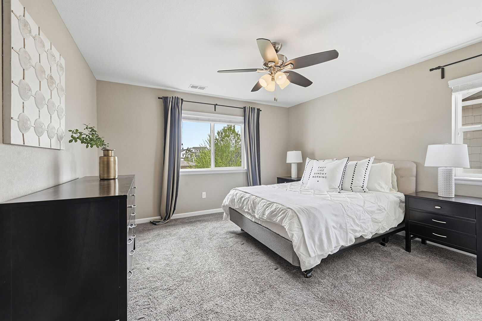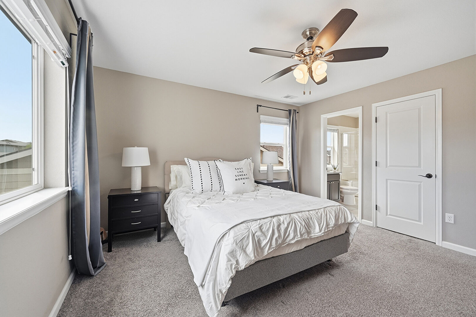 Baseboards Wall, Carpet, Ceiling Fan, Drywall, Ensuite Bathroom, Natural Light, Natural Light, Vent