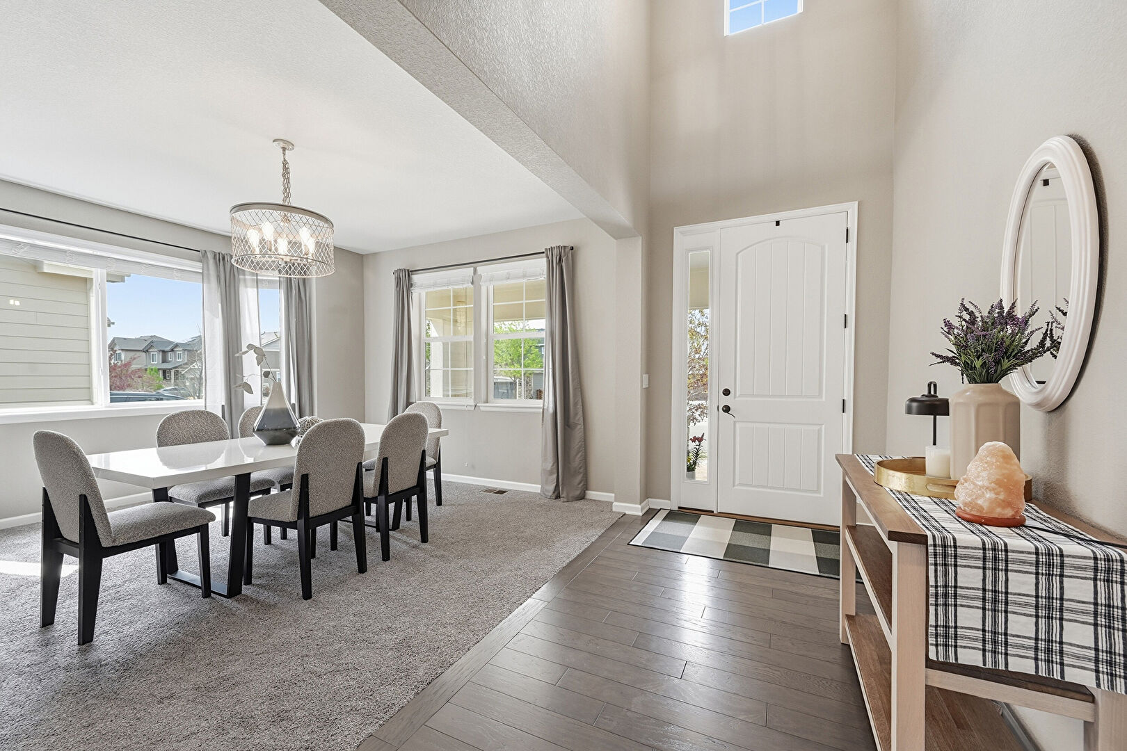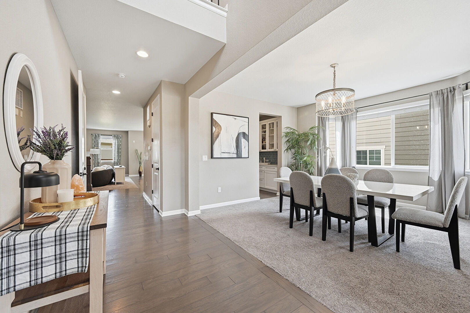 Baseboards Wall, Carpet, Drywall, High Ceiling, Natural Light, Notable Chandelier, Recessed Lighting, Vent, Wood Finish Floor, Drywall, Natural Light