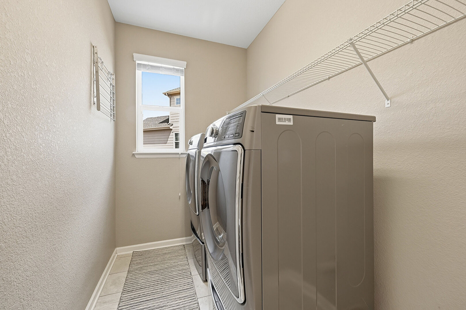 Baseboards Wall, Natural Light, Textured Wall, Tile Floor, Laundry