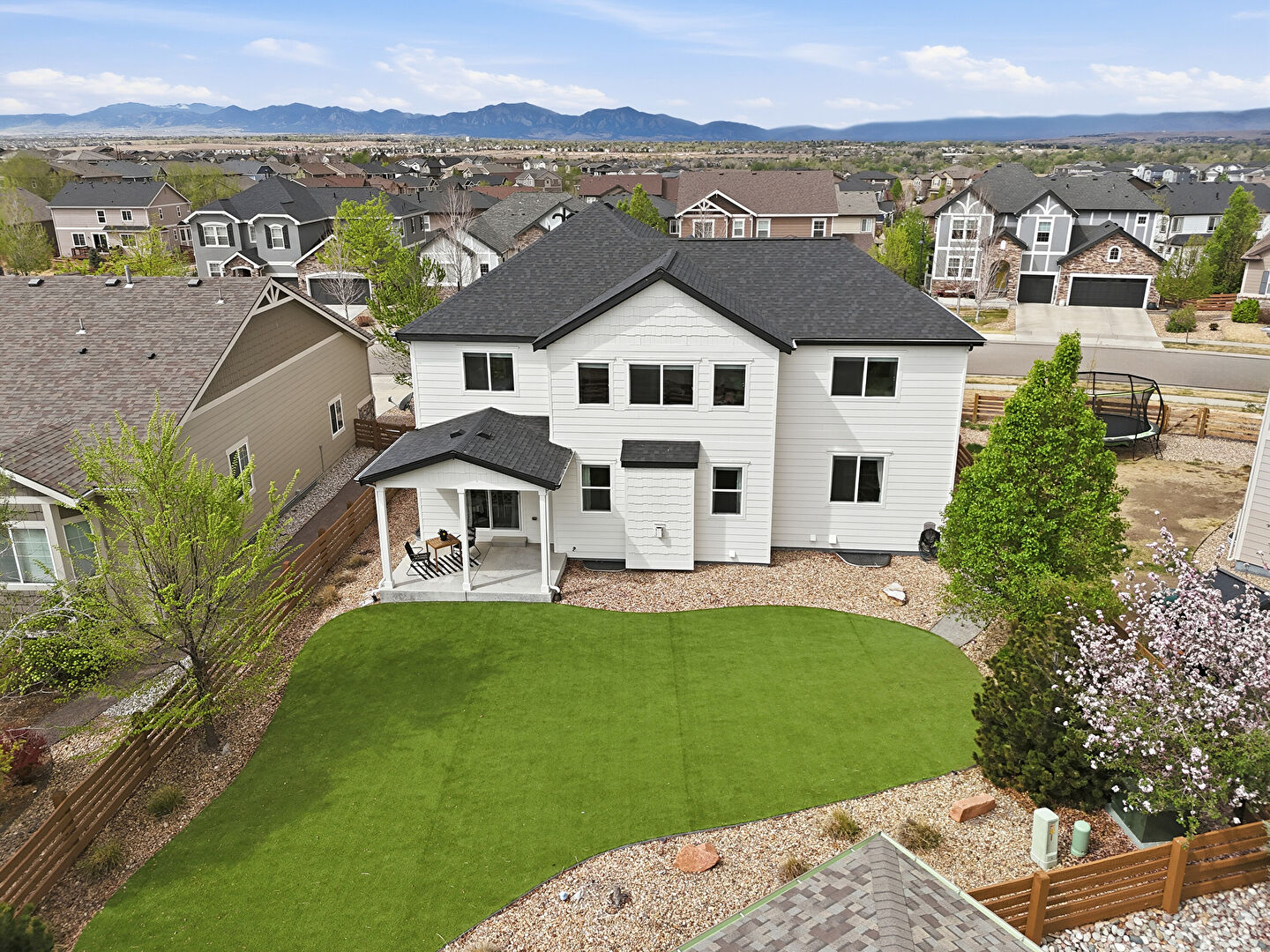 Built In Garage, Downspout, Driveway, Fence, Horizontal Siding, Lawn, Mountain View, Patio, Porch, Residential View, Shingle Roof, Stone Siding, Concrete Foundation, Driveway, Residential View, Shingle Roof