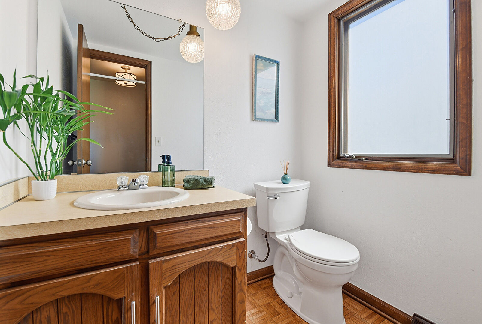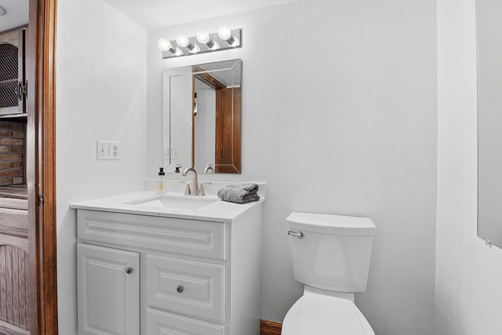 Baseboards Wall, Drywall, Full Bathroom, Half Bathroom, Natural Light, Vanity, Wood Finish Floor, Full Bathroom, Half Bathroom, Textured Wall, Vanity, Vent