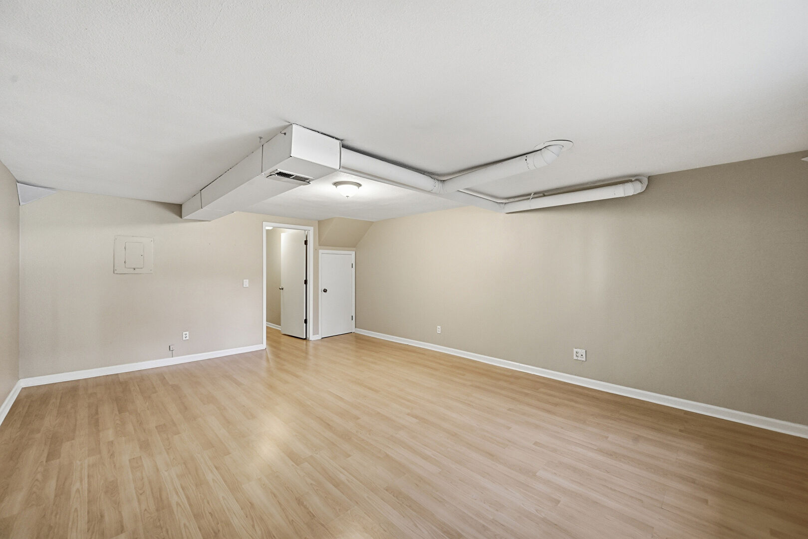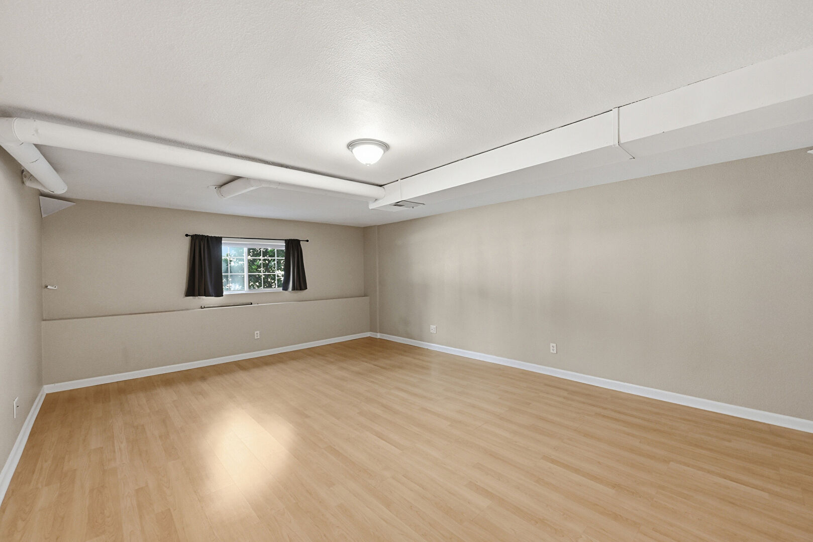 Baseboards Wall, Basement, Drywall, Electric Panel, Natural Light, Vent, Wood Finish Floor, Drywall, Vent