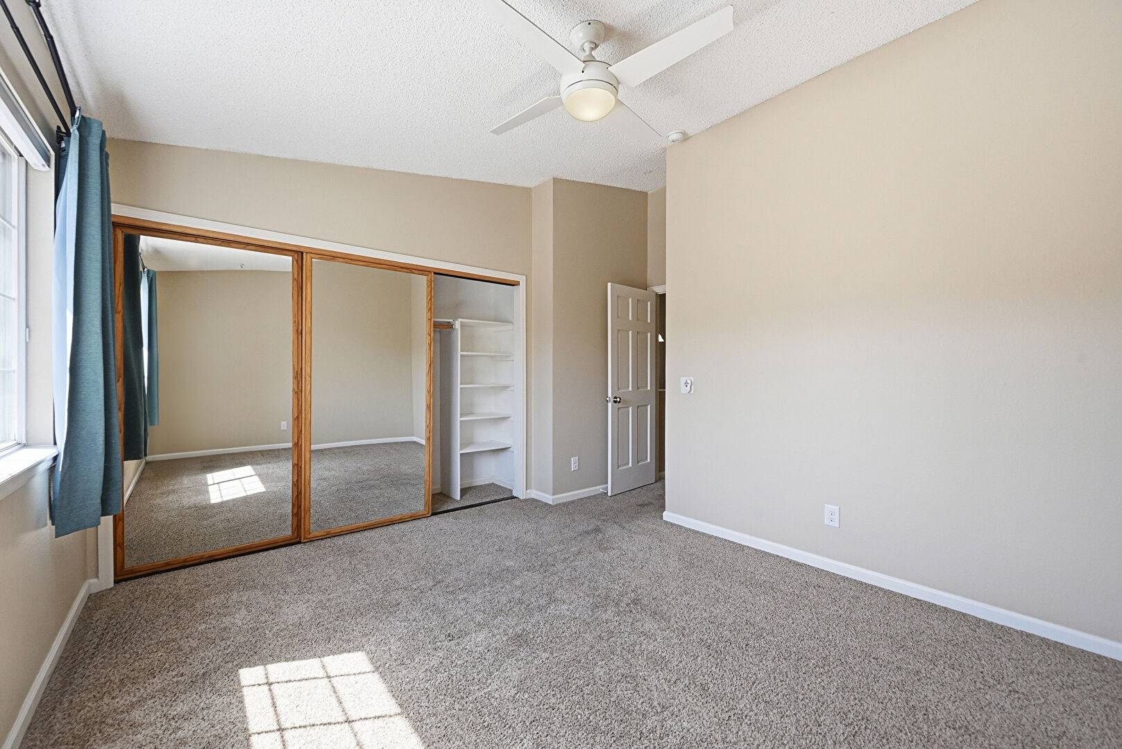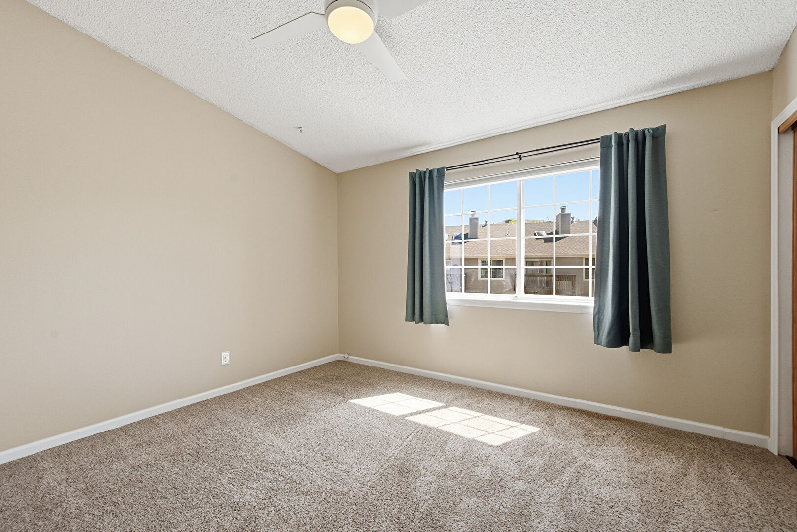 Baseboards Wall, Carpet, Ceiling Fan, Drywall, Natural Light, Textured Ceiling, Closet, Natural Light