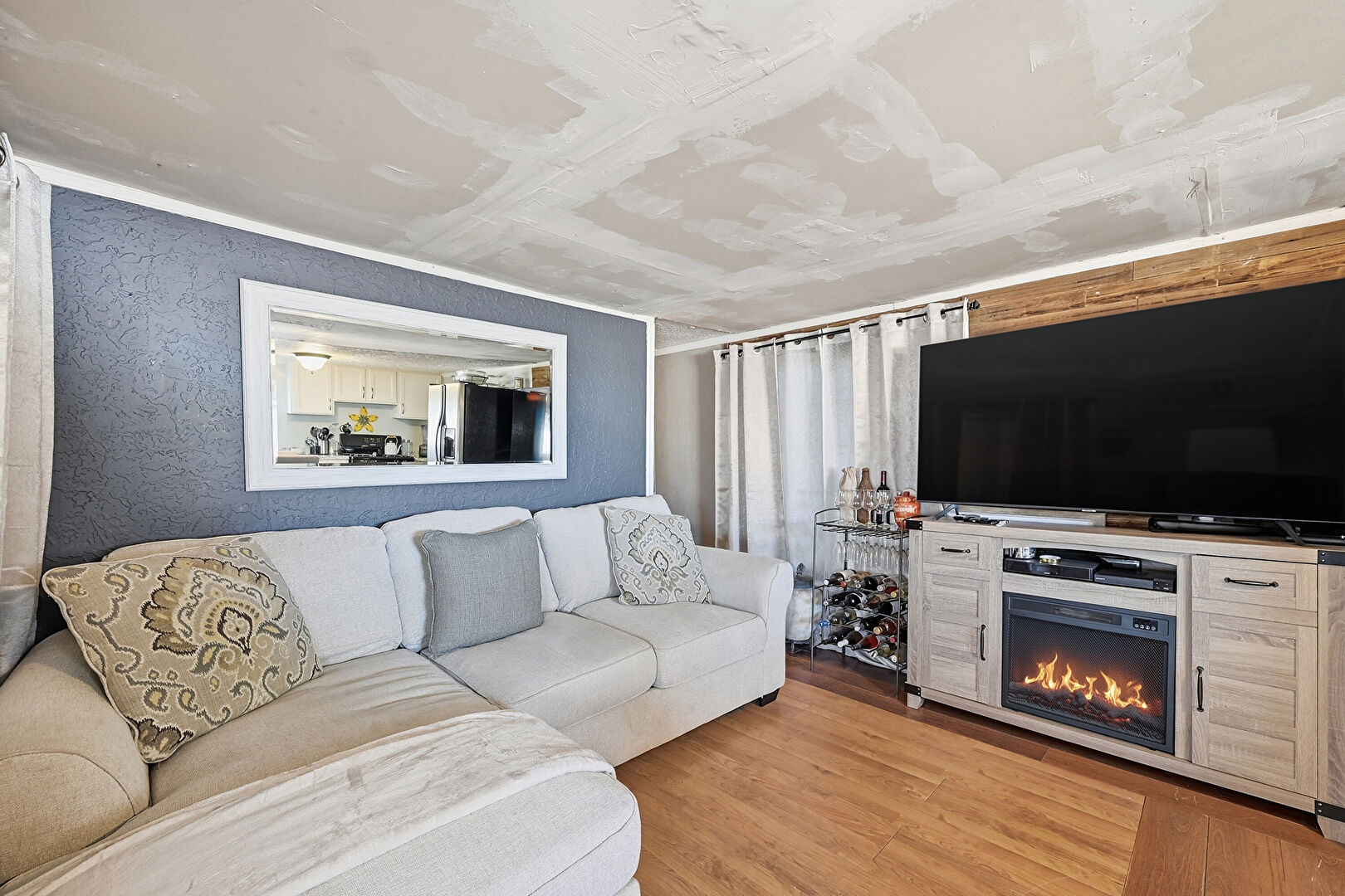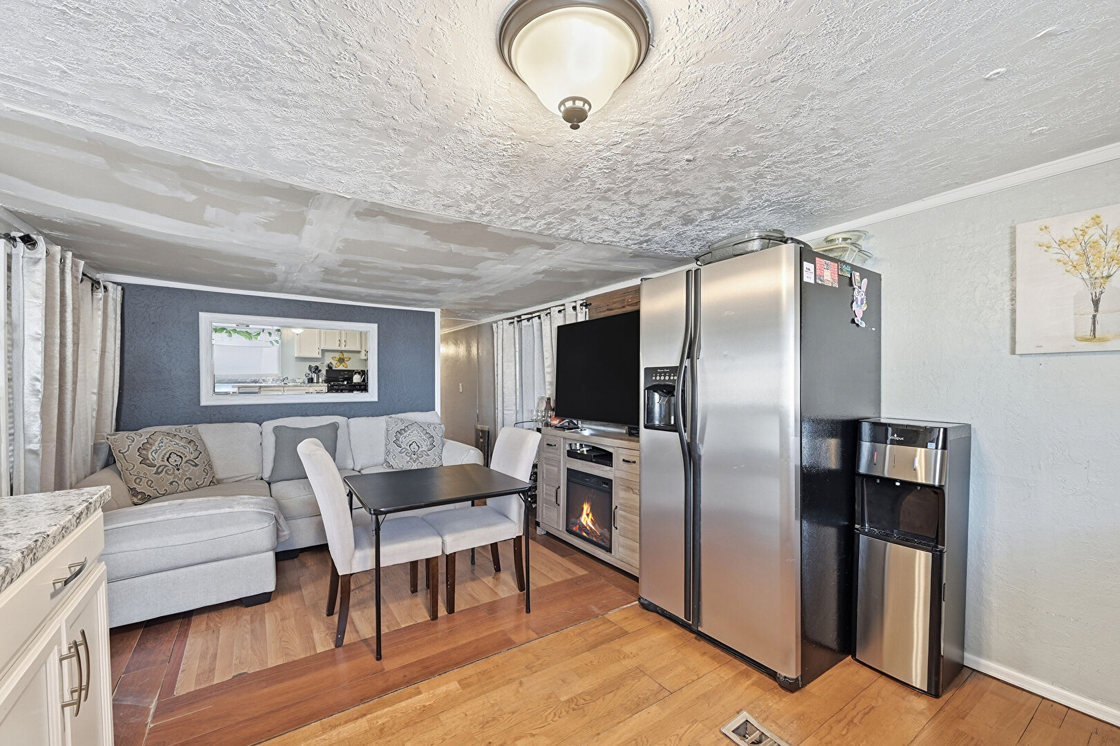 Fireplace, Natural Light, Smoke Carbon Monoxide Detector, Textured Wall, Vent, Wood Finish Floor, Baseboards Wall, U Shaped Kitchen, Wood Finish Floor